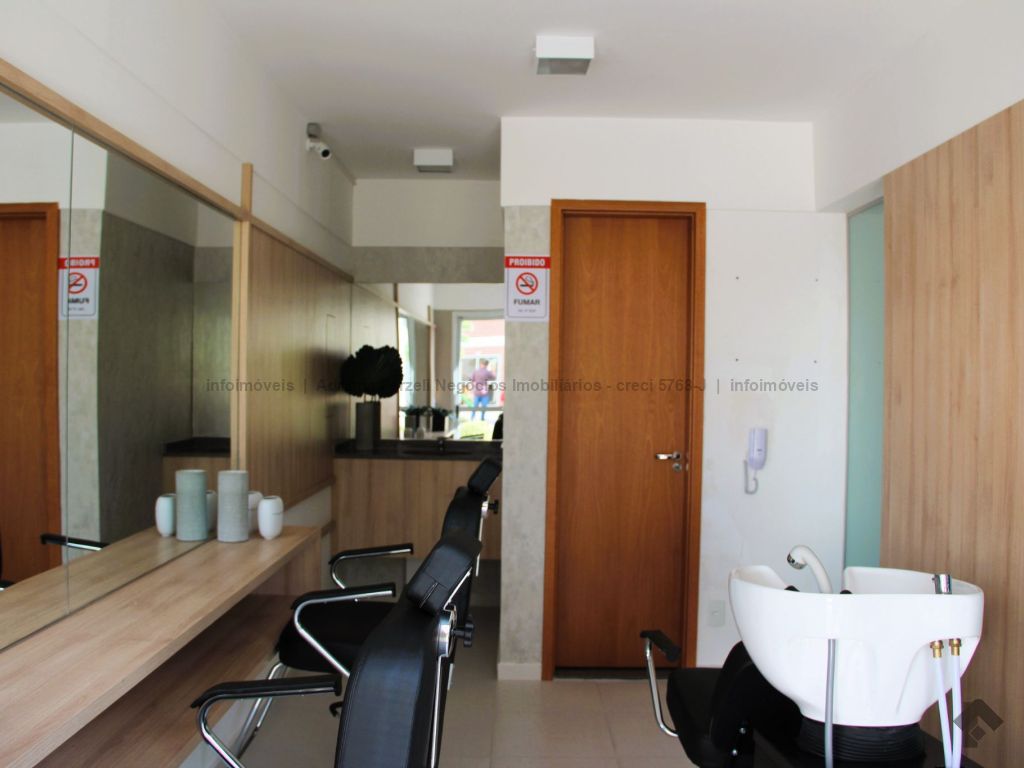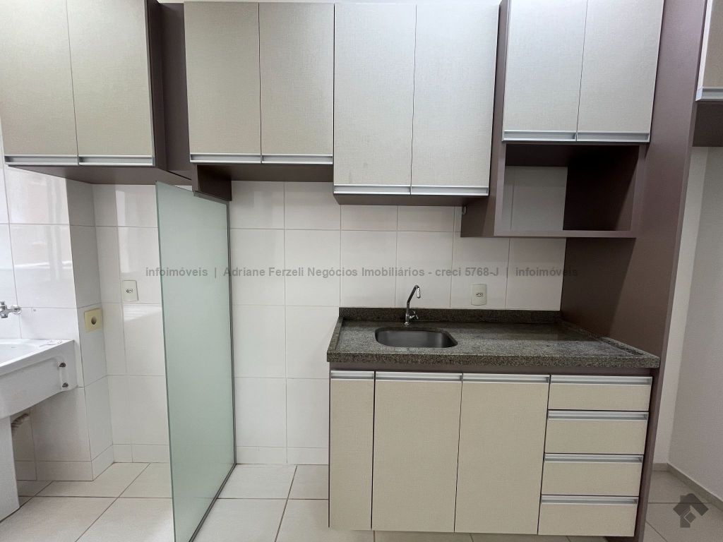 Sala de TV com painel, cozinha equipada com armários, banheiro social, dois quartos, ambos com guarda-roupas. Condomínio dispõe de espaço kids, salão de festas infantil, espaço mulher e quadra de esportes. Permitido animais de pequeno porte.