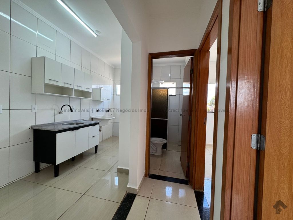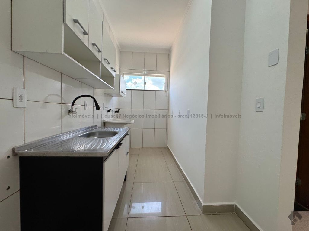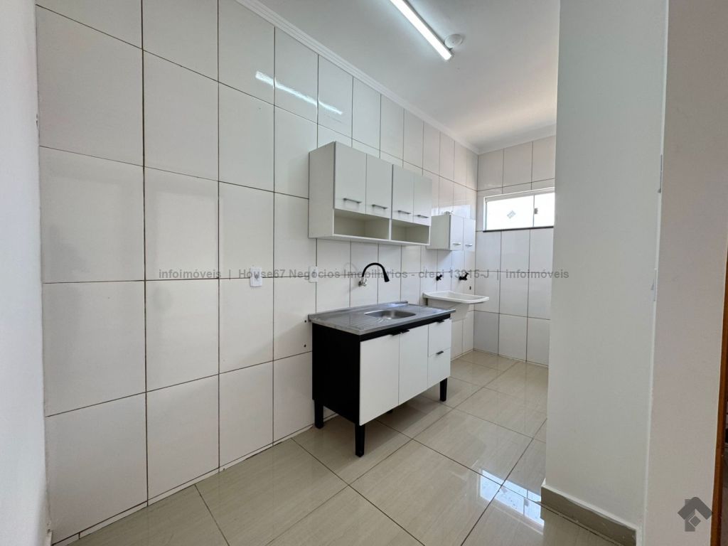 Área total de 48,03 m², área privativa de 42,76 m², garagem descoberta, sala, cozinha, banheiro social, dois quartos, lavanderia anexa e/ou conjugada à cozinha. Apartamento com armários na cozinha, pintura nova e pronto para morar.