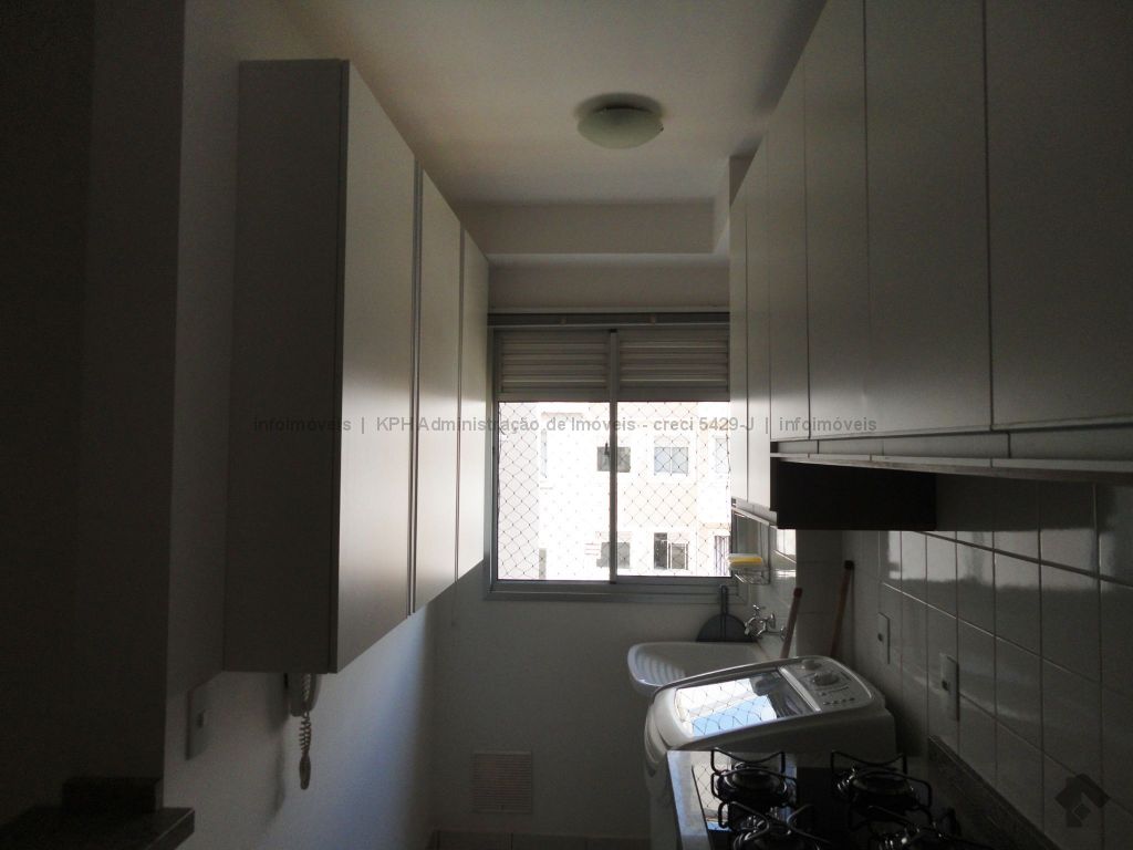Uma vaga de garagem, sala de estar e sala de jantar, 1 aparelho de ar condicionado, wc social, 1 suíte e 2 quartos sem armários, banheiro da suíte com armário, cozinha com armários e lavanderia. Condomínio com piscina e churrasqueira. Não é mobiliado.