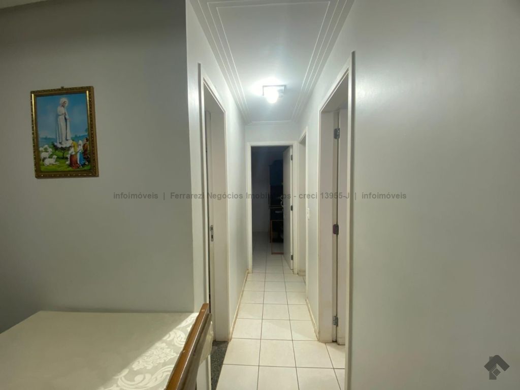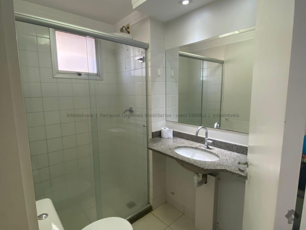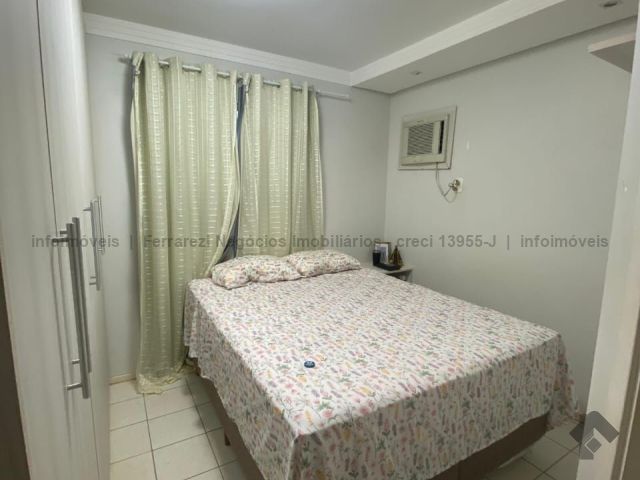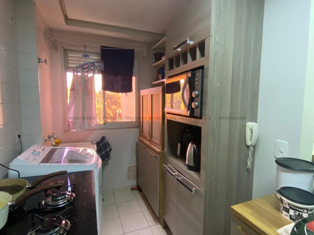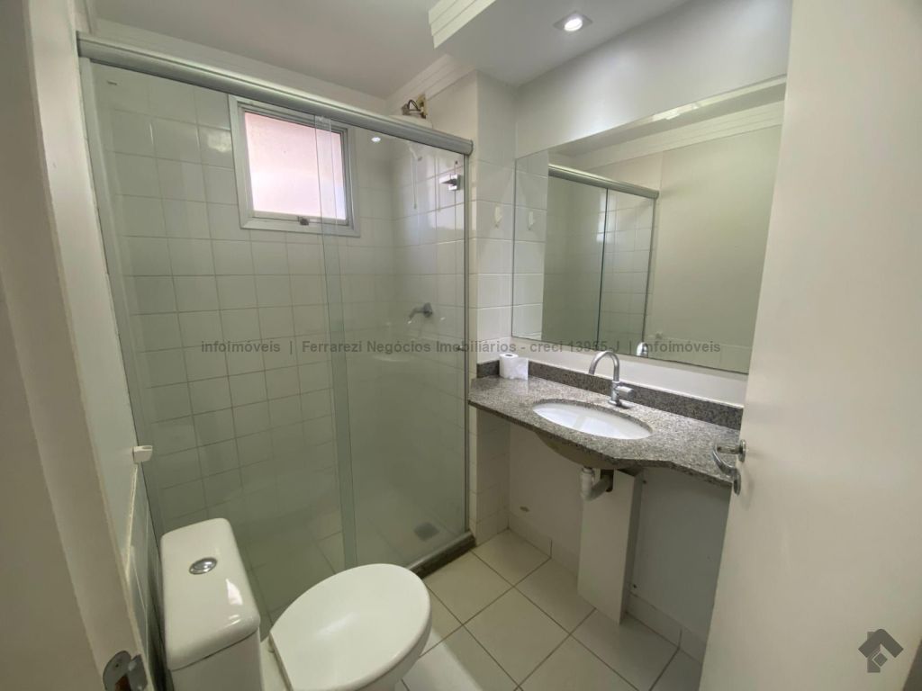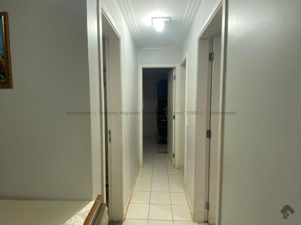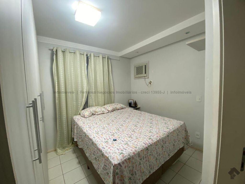 2 quartos, 1 suíte, sala, cozinha com armários, banheiro social e possui sacada.
