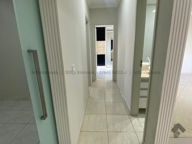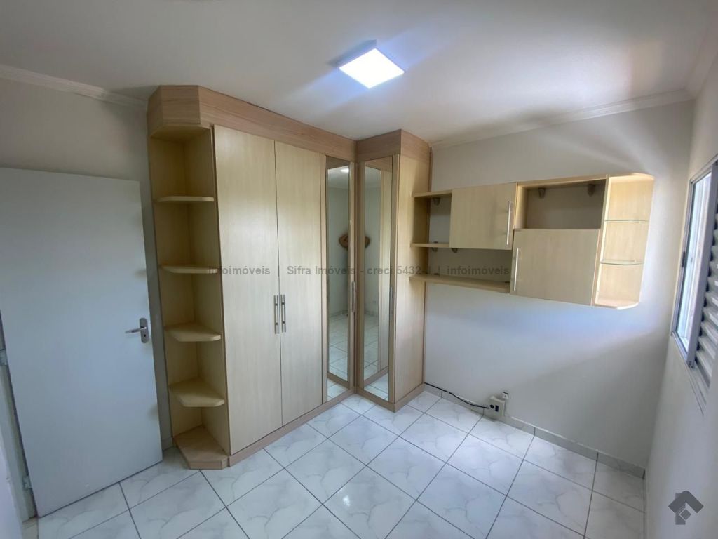 Imóvel contém armários, sala dois ambientes com painel de TV, sacada, sala de jantar com espelho, cozinha com armários, 03 quartos sendo 01 suíte com armários, wc social, área de serviço, garagem para 01 carro. Condomínio completo, com câmeras de segurança, churrasqueira, estacionamento para visitantes, guarita, interfone, playground, salão de festas.