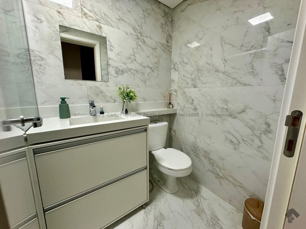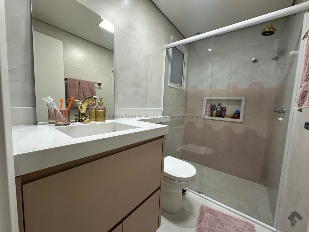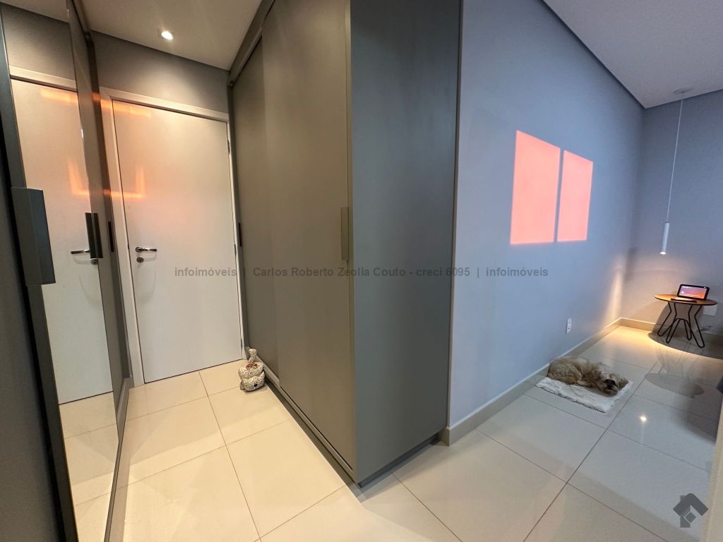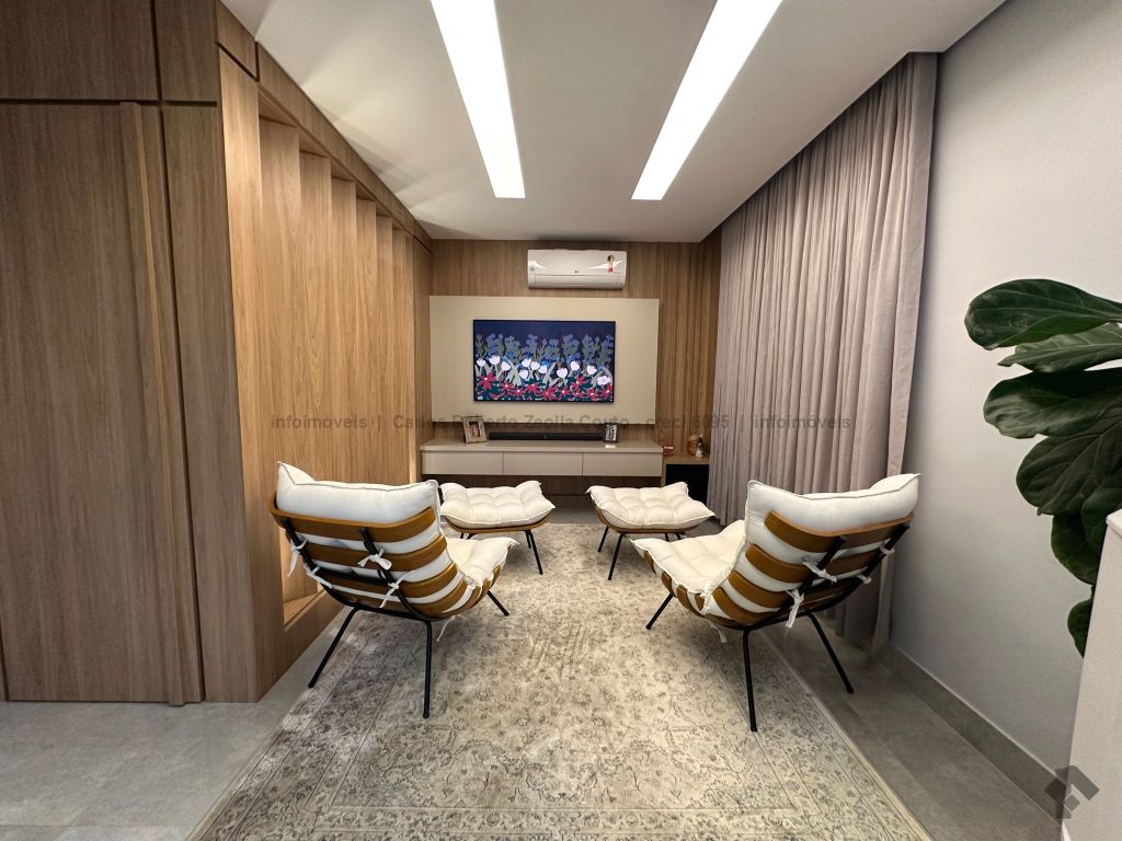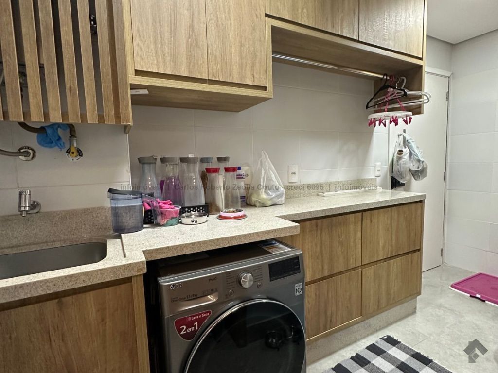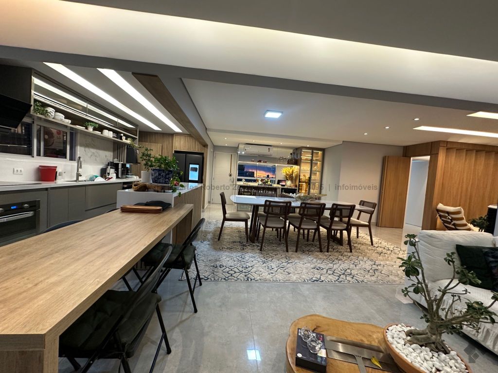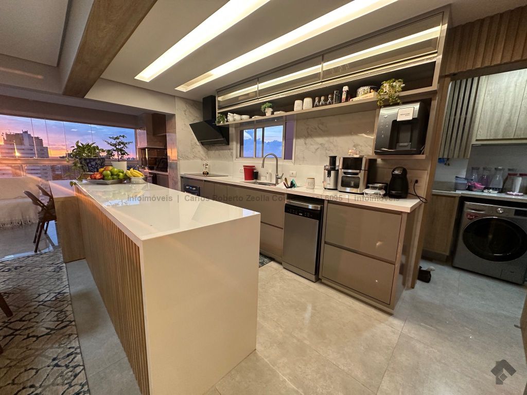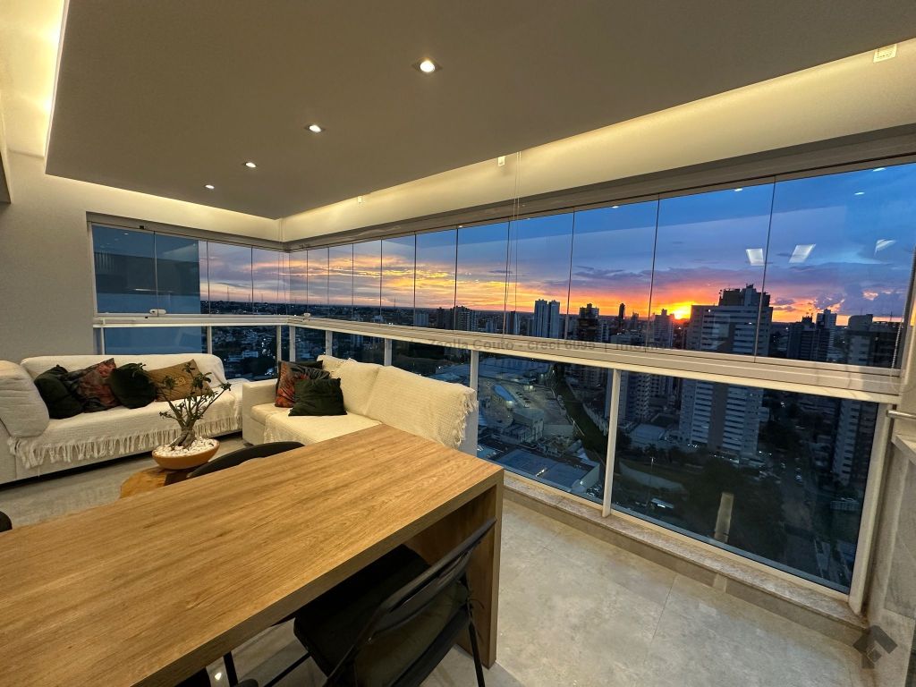 Cozinha completa, toda planejada, ilha, micro-ondas, geladeira smart, fogão de indução, coifa de sensor, filtro bland (faz refrigerante e água com gás), forno embutido, lavadora de louças. Foi trocada toda a pedraria e revestimentos. Sala ampla com dois ambientes: sala de TV com painel ripado, TV e home theater, 2 ar-condicionados em diferentes pontos, sancas, e sala de jantar com mesa laqueada e 8 lugares, cristaleira com adega, espelho bisotê e armários Reflecta. Sacada gourmet toda planejada e fechada com reiki, ar-condicionado, cervejeira e churrasqueira com gira grill, mesa de centro com lareira embutida e uma linda vista para o pôr do sol. Lavabo com pedras onix retroiluminadas.