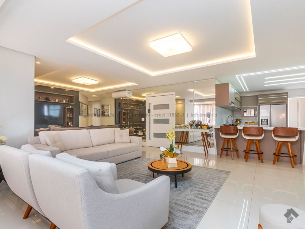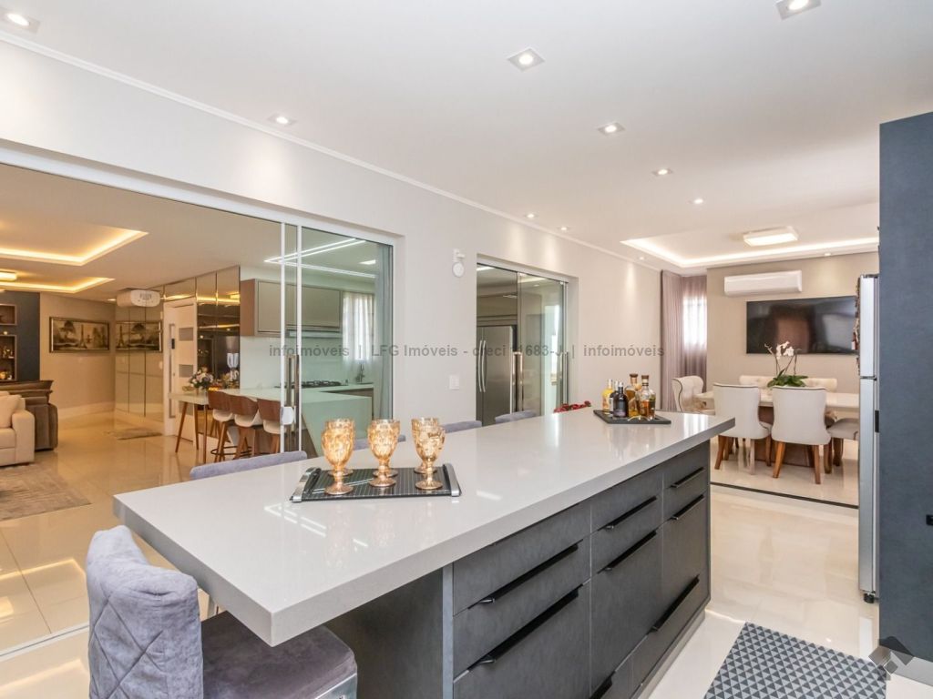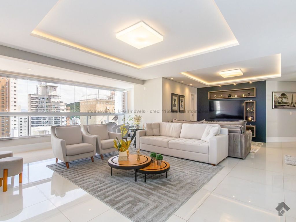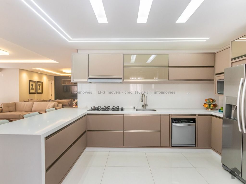 Belíssima cobertura plana, mobiliada (porteira fechada). Apartamento possui 4 suítes, sendo 1 máster com sacada, living 3 ambientes, conectando sala de estar, sala de TV e sala de jantar. Espaço gourmet com churrasqueira à carvão, área de serviço e 4 vagas de garagem. Mobília planejada e ambientes equipados, climatizados e conectados. O prédio contém apenas 23 apartamentos, com toda infraestrutura de área de lazer, piscina, área infantil e academia.