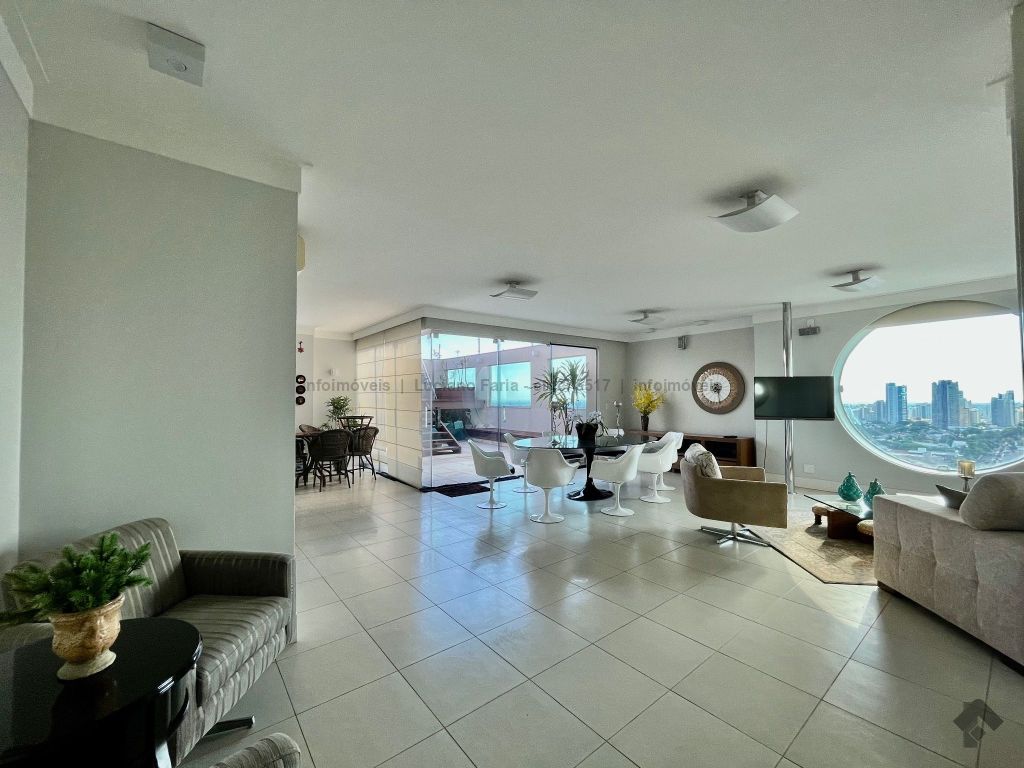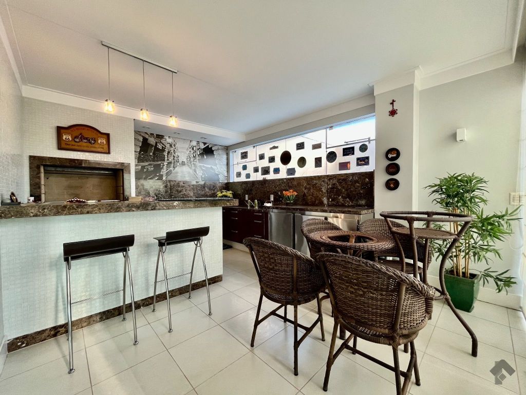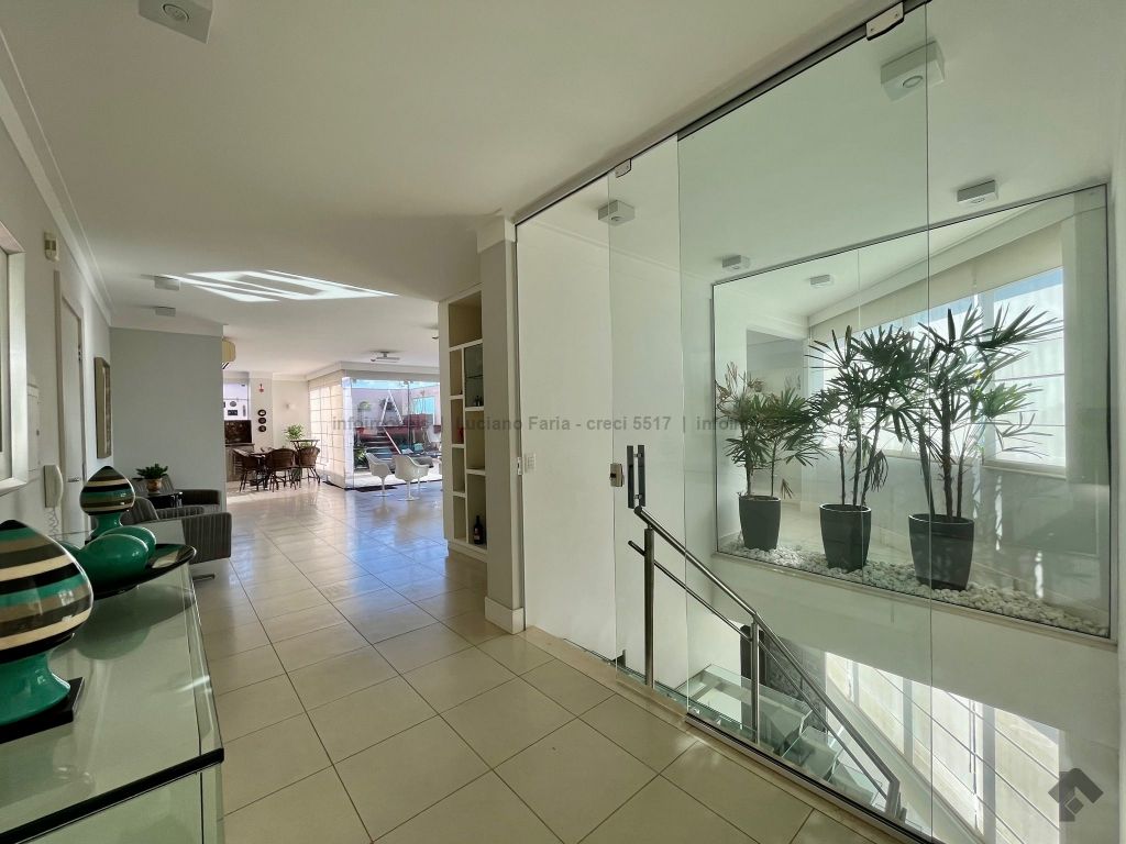 A sala é ampla, com espaço destinado a home office, lavabo, 3 suítes, cozinha planejada e dependências completas para funcionários. O piso superior conta com um amplo living com banheiro e 1 quarto (ambiente reversível), espaço gourmet com portas retráteis estilo reiki, que possibilitam a integração com o charmoso deck, piscina e hidro.