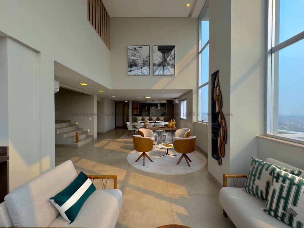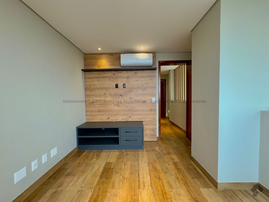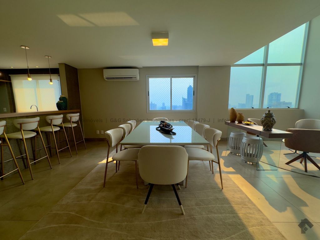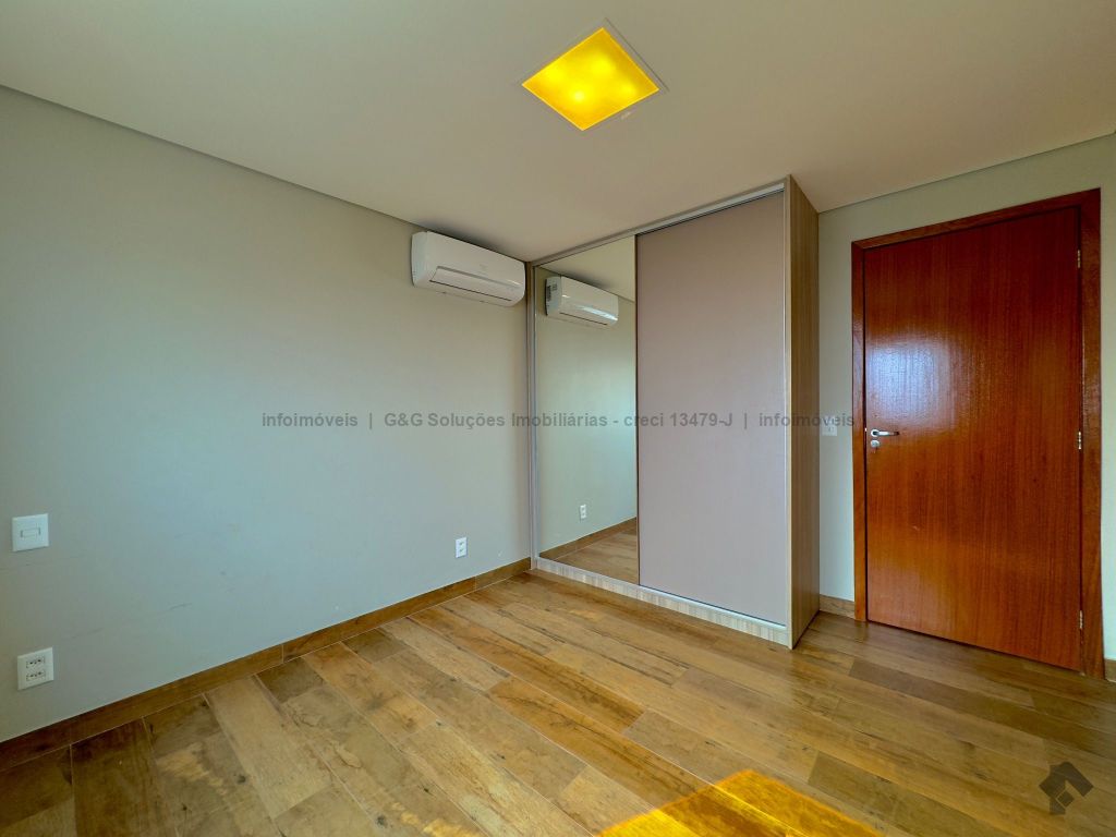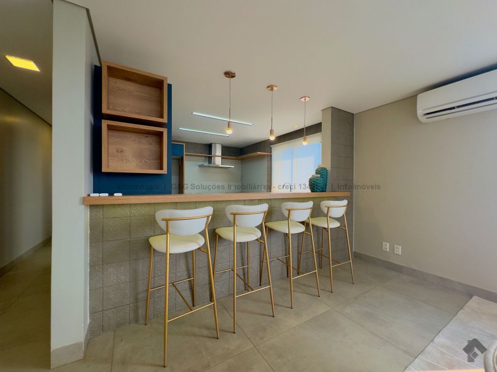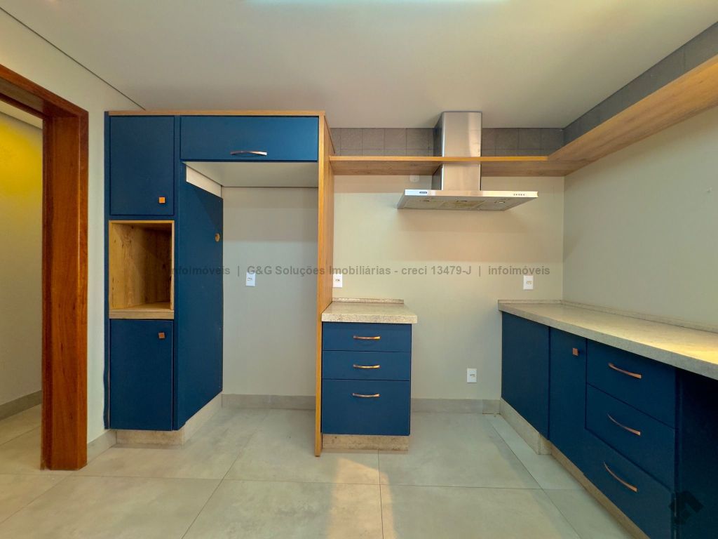 Pavimento inferior: living, sala de jantar, área gourmet com churrasqueira, cozinha, despensa planejada, lavabo, lavanderia, banheiro para serviço. Pavimento superior: três suítes, home office, três vagas de garagens cobertas com box, possui alguns móveis de marcenaria. Descrição do empreendimento: piscina, sauna, quadra de squash, quadra poliesportiva, salão gourmet, brinquedoteca, academia, porteiro 24 horas.