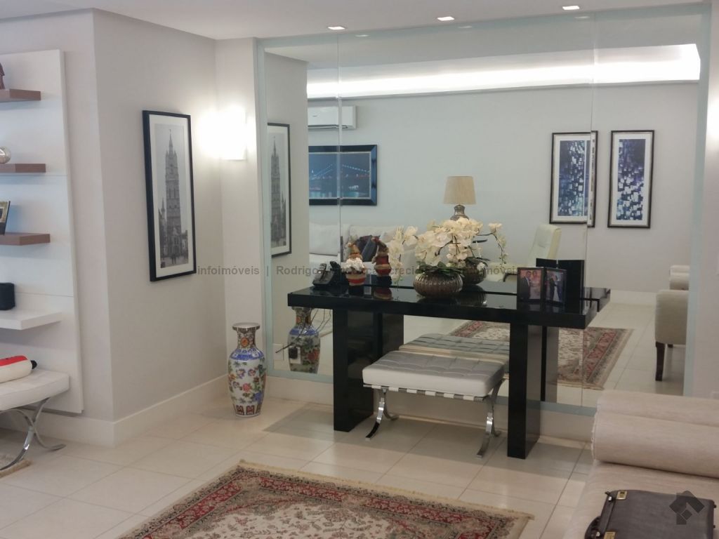 Excelente cobertura no edifício Da Vinci com área total de 425m² e área útil de 300m². O imóvel possui 4 vagas de garagem cobertas, também possui área de lazer completa com sauna, piscina e área gourmet, e está todo mobiliado, equipado e com armários planejados, pronto para morar.