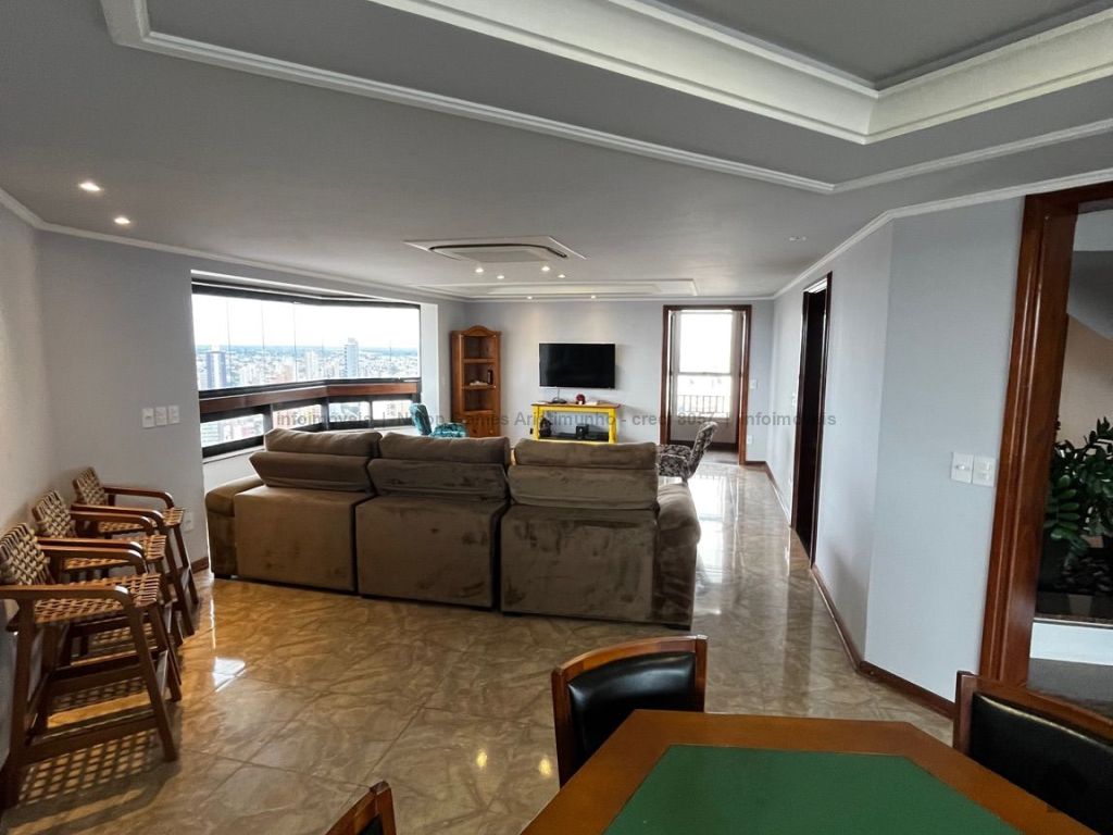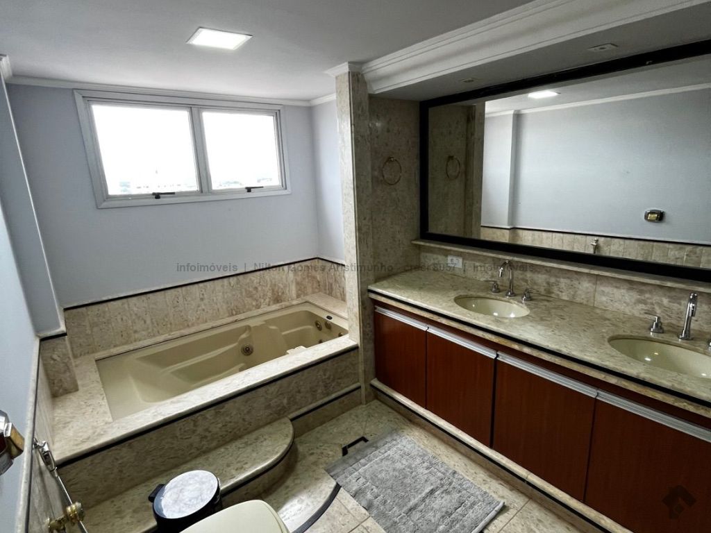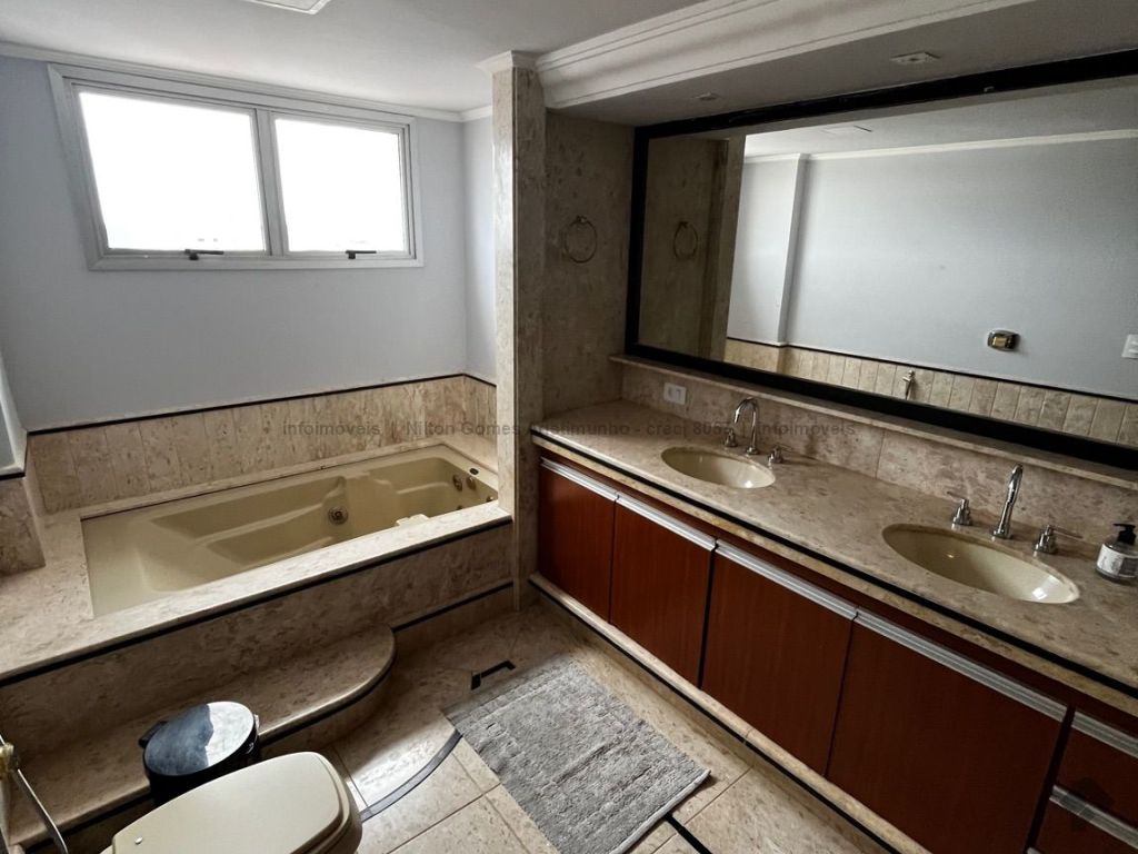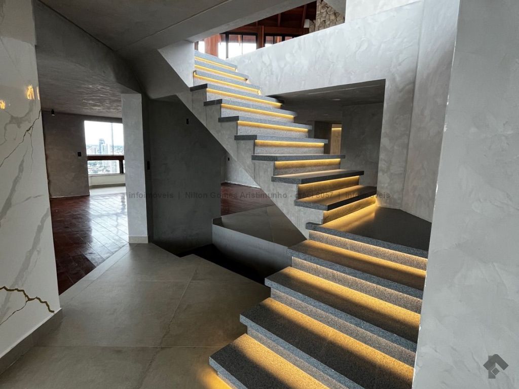 Estamos falando do espaço de um triplex com uma área de lazer privativa na cobertura, com vista 360º, piscina aquecida, área gourmet, cozinha, ampla área de recepção. Faça festa para muitos convidados no seu apartamento. São quatro suítes, uma master, várias salas para receber, duas salas de TV, duas cozinhas, quarto de serviço, área de serviço. Possui ar condicionado cassete na sala de TV e quartos. Sacada em todos os andares.