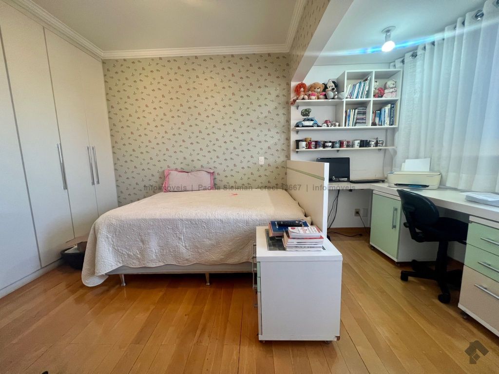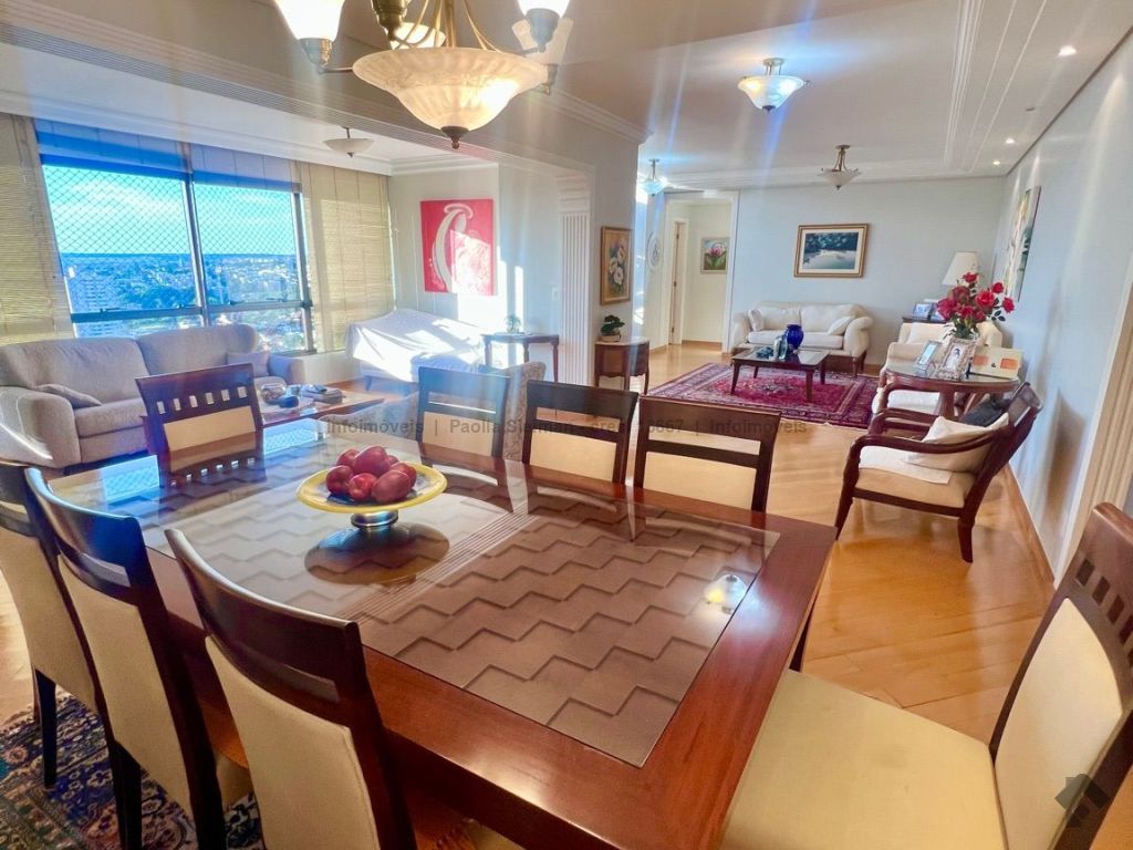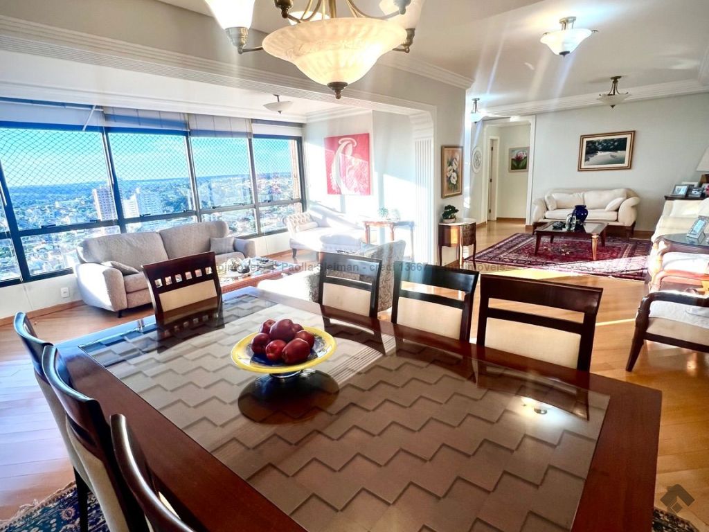 Primeiro piso, 1 lavabo, sala enorme para 6 ambientes, cozinha planejada, lavanderia com quarto de empregada e banheiro social, 3 suítes sendo uma master com armários, banheiro com cuba dupla e banheira. Todas as suítes possuem armários, lavabo, sala de jantar, sala de estar, sala de TV, cozinha planejada, 1 suíte master com armários, piscina no terraço com vista para o centro da cidade, varanda com jardim no terraço, banheiro social, churrasqueira.