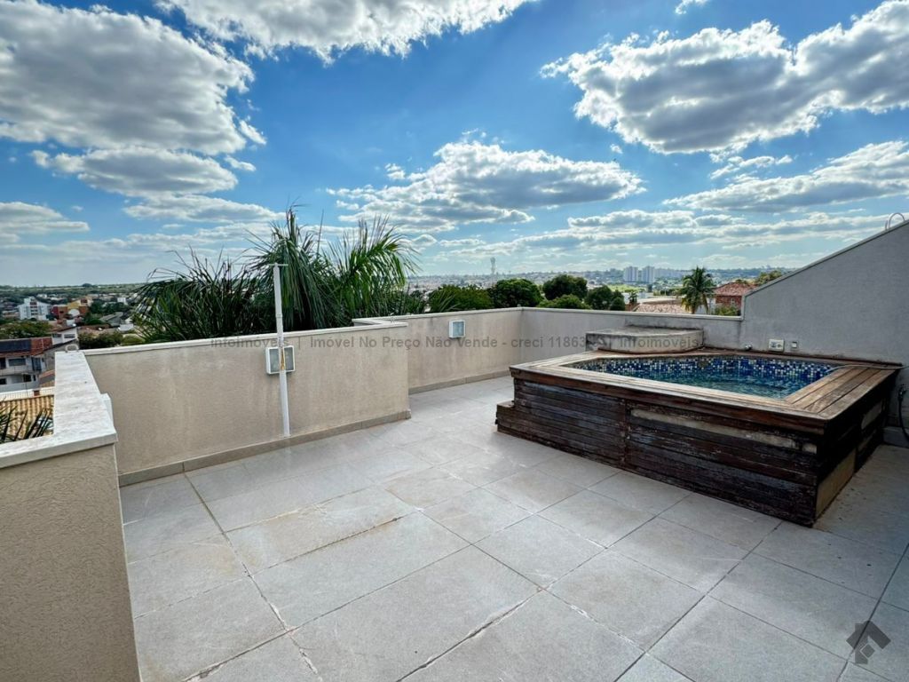 3 quartos sendo 1 suíte, 2 banheiros sociais, sala 2 ambientes, cozinha com armários, área de serviço, área gourmet, piscina privativa, 2 vagas de garagem.