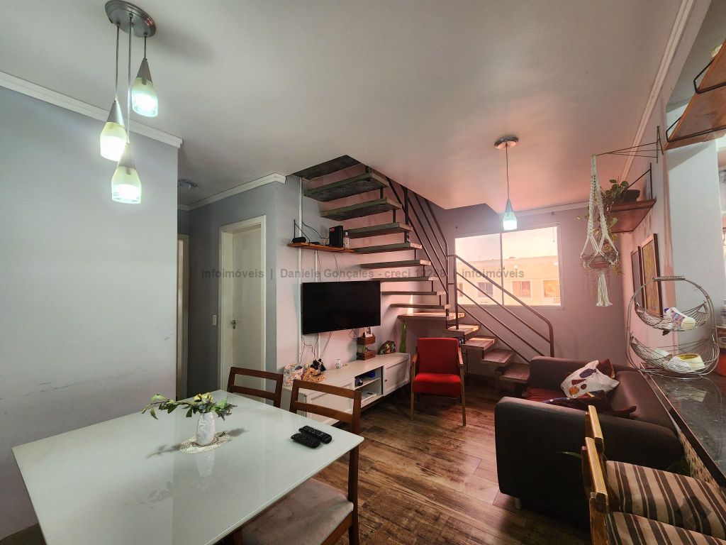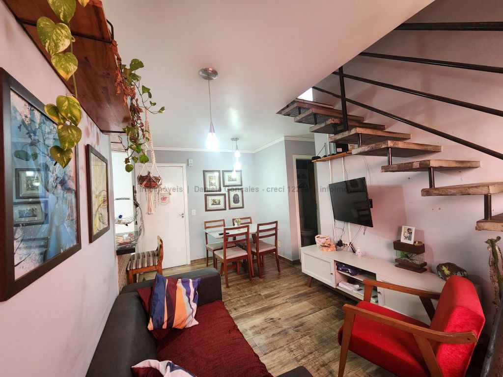 Apartamento duplex no Residencial Parque Ciudad De Vigo. Este apartamento diferenciado possui uma varanda espetacular. No primeiro piso, há uma suíte com guarda-roupa, um quarto com guarda-roupa, banheiro social, sala para dois ambientes e cozinha com armários e cooktop. No piso superior, encontra-se um quarto com closet, banheiro e uma varanda ampla com churrasqueira. Inclui uma vaga de garagem coberta. O condomínio oferece uma área de lazer completa, com piscina, salão de festas, quiosques, playground e academia, além de portaria 24h. Área útil: 100,00m². Vem conhecer este duplex incrível.