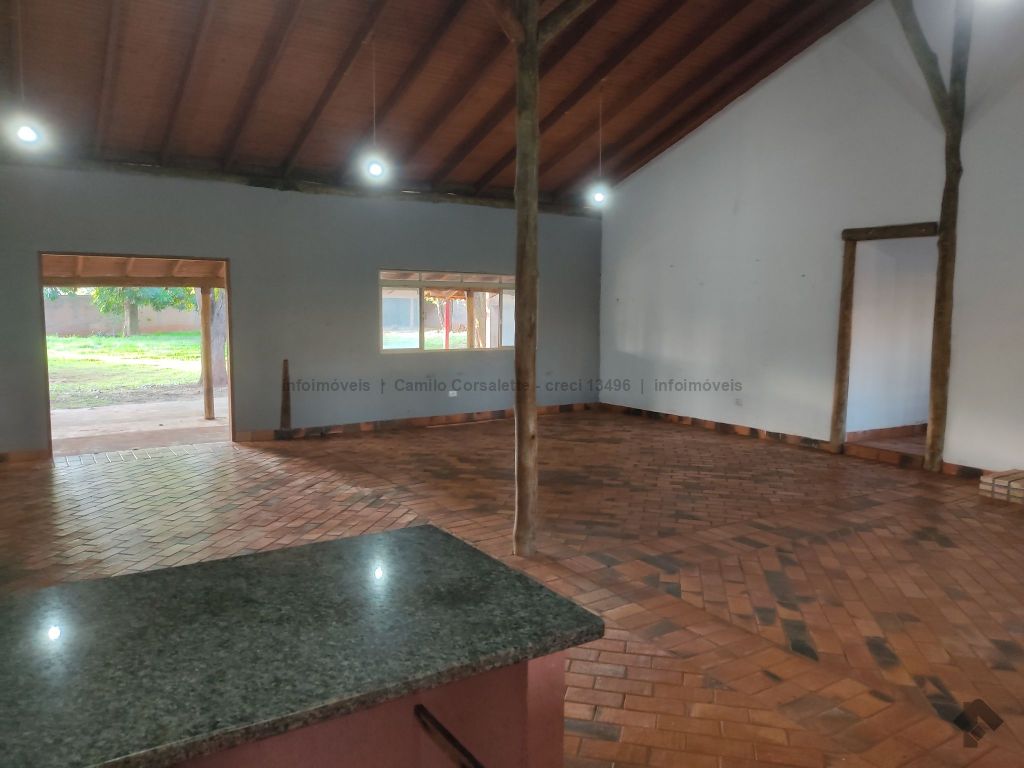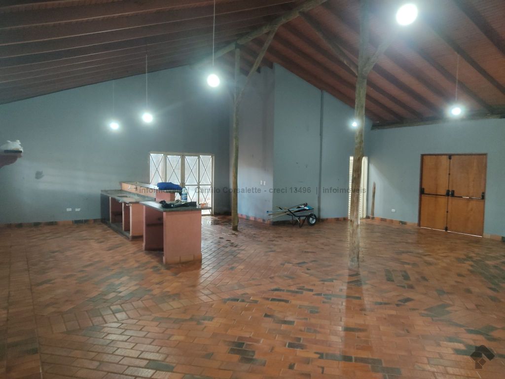 O imóvel possui um barracão de 15 x 20 com piso reforçado. A casa com 4 suítes, podendo ser salas para escritório, mais dois banheiros externos, espaço gourmet com churrasqueira, fogão a lenha, ilha central, forno de pizza, salão com cozinha e lareira, redário, sala de TV, lavanderia, despensa, depósito, campo de futebol, entre outros.