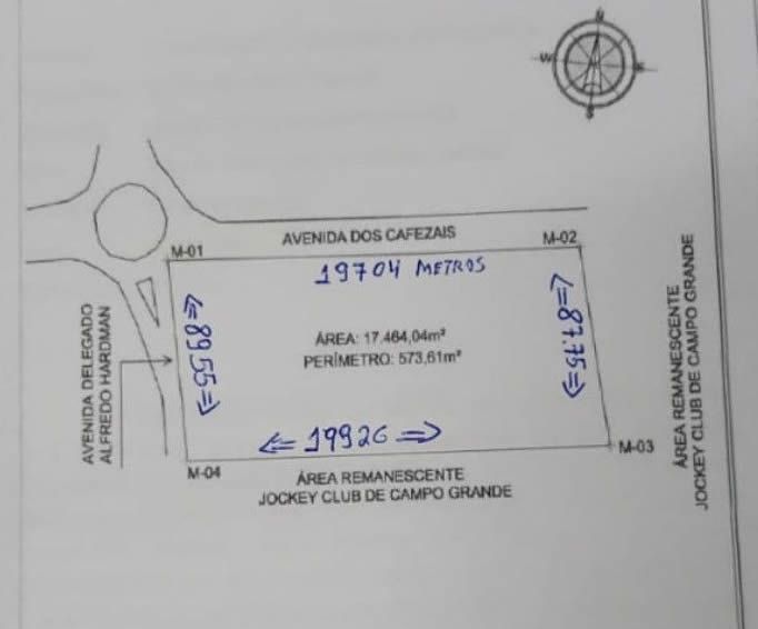 Medindo 197,04 metros de frente para a avenida dos Cafezais e 89,55 metros de frente para a avenida Delegado Alfredo Hardman.