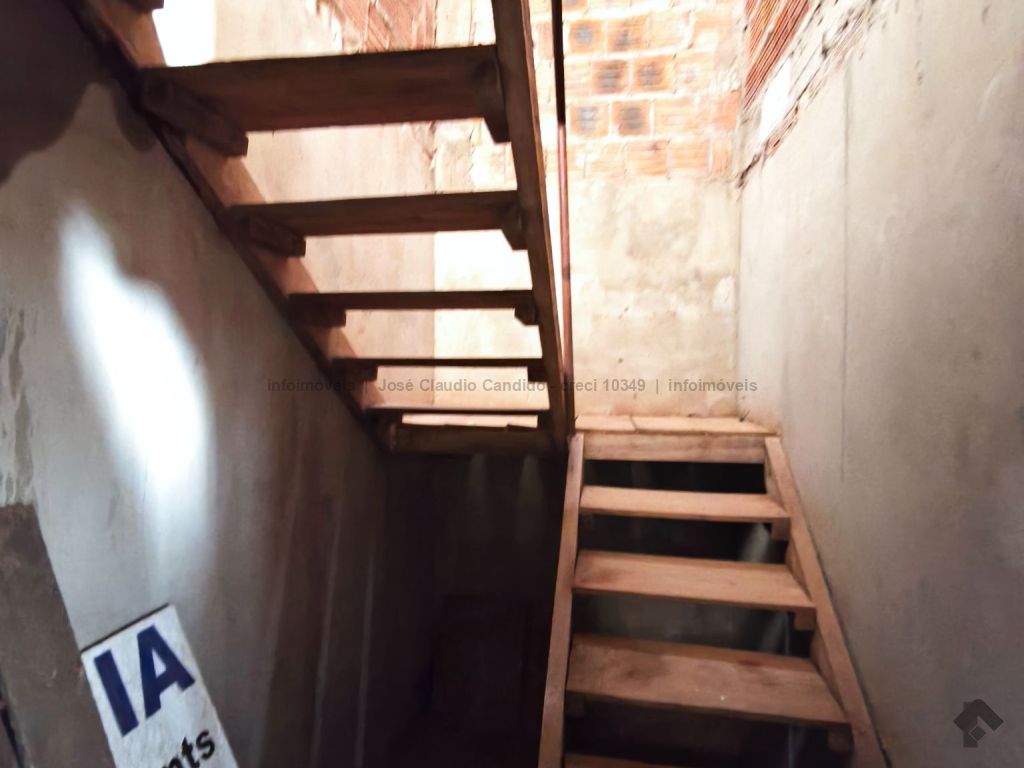 Metade do terreno (6 x 30) no andar inferior contém: salão com banheiro, que pode ser usado como imóvel comercial, no fundo mais duas salas e um banheiro, precisa de acabamento, andar todo na laje. No andar superior contém: sala, cozinha, 4 quartos e 1 banheiro, parte desse andar está forrado com PVC, sala e cozinha precisam de acabamento. Outra metade do terreno (6 x 30) possui outro salão comercial.