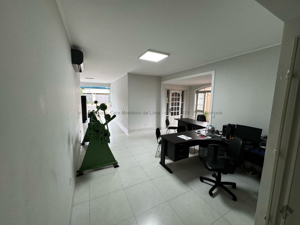 Piso térreo: sala de estar, sala de jantar, sala íntima, 2 apartamentos com armários embutidos, 1 quarto, copa com armários embutidos, cozinha com armários embutidos, 2 vagas de garagem fechadas e cobertas com acesso direto à sala, 3 vagas descobertas na frente do imóvel. Piso inferior: sala para 2 ambientes, 1 apartamento, área de serviço, banheiro, quarto de serviço, depósito, piscina, sauna, cobertura com churrasqueira. Características gerais: construção toda em lajota, telhado com telha romana, pisos vitrificados e de madeira.