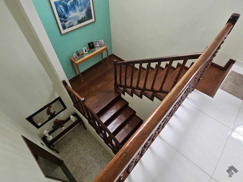 Imóvel com garagem coberta para 3 carros, parte de cima do sobrado com 1 suíte com closet, mais 2 quartos, 1 banheiro e sala privativa. Parte de baixo, 3 salas, 1 banheiro social, 1 lavabo, sala de jantar, cozinha, lavanderia e espaço gourmet, pega duas frentes com saída para duas ruas, sendo dois terrenos, um com sobrado e outro com árvores frutíferas e espaço para futura construção.