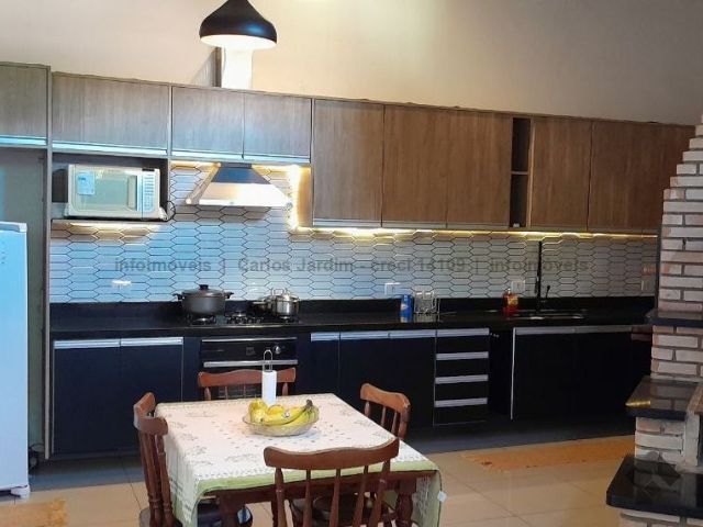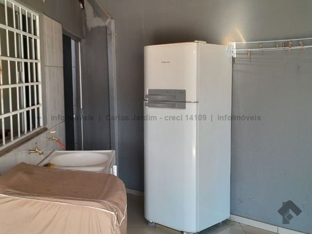 Casa possui garagem coberta, sala, 3 quartos, 1 banheiro, cozinha toda planejada, área de serviços coberta, salão ao lado com banheiro que pode ser alugado, renda extra.