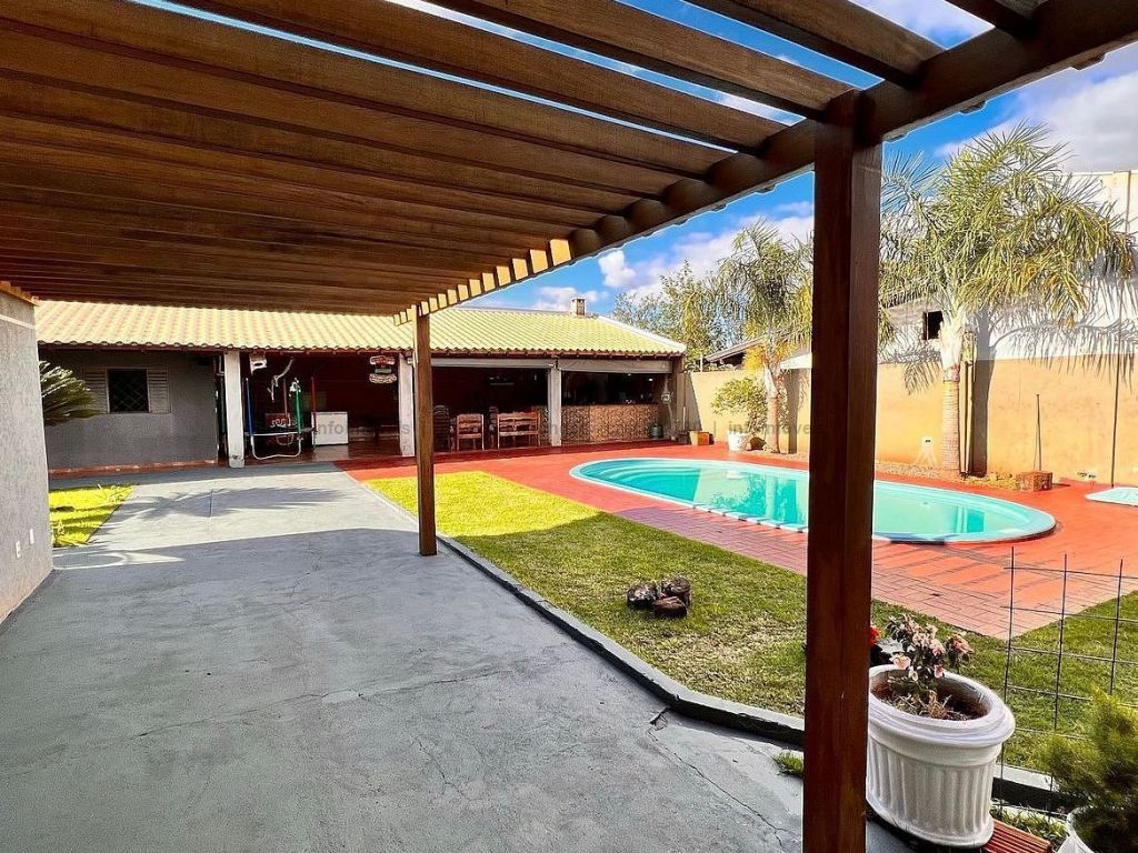 Excelente casa com ampla área e estrutura completa. Casa com área total de 720 m² e área útil de 389 m², ideal para quem busca conforto e praticidade. O imóvel conta com 04 quartos, sendo 01 suíte e 01 na edícula, 03 banheiros, cozinha com móveis planejados, 05 aparelhos de ar condicionado, vaga para 03 carros. A área gourmet foi recentemente reformada, oferecendo um espaço moderno e acolhedor para receber amigos e familiares. Aproveite também a piscina de 4,10 x 8,20 metros para momentos de lazer. Energia fotovoltaica de 1200 kW, boiler de 400 litros para água quente, poço artesiano, jardim e muita área coberta em madeira nobre na parte externa da casa.
