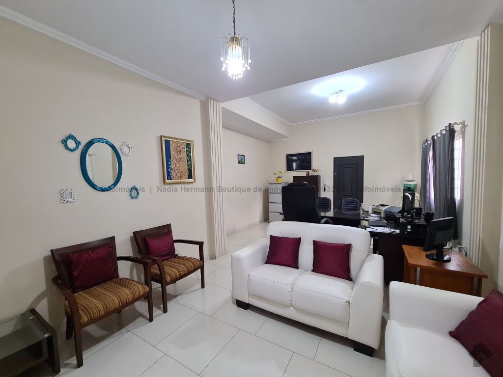 Piso superior: 2 suítes com ar condicionado, 01 quarto, banheiro social e sala de TV. Piso inferior: 2 salas, cozinha, despensa( com banheiro, pia e quarto), quintal e garagem. 1 sala comercial com banheiro e copa.