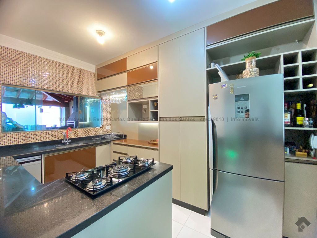 Casa com 192m², pé direito alto, ótima integração de ambientes, suíte com closet, cozinha e espaço gourmet com armários planejados. Na frente tem um salão comercial, no piso superior tem duas salas totalizando 100m².