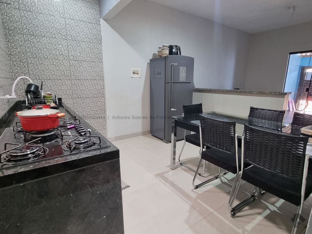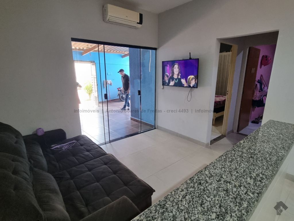 Excelente localização no bairro. Composta de 2 quartos, sala ampla, banheiro social, garagem coberta para 2 carros, cozinha americana com armário embutido, área de serviço coberta, portão de elevação e espaço na frente para outro quarto.