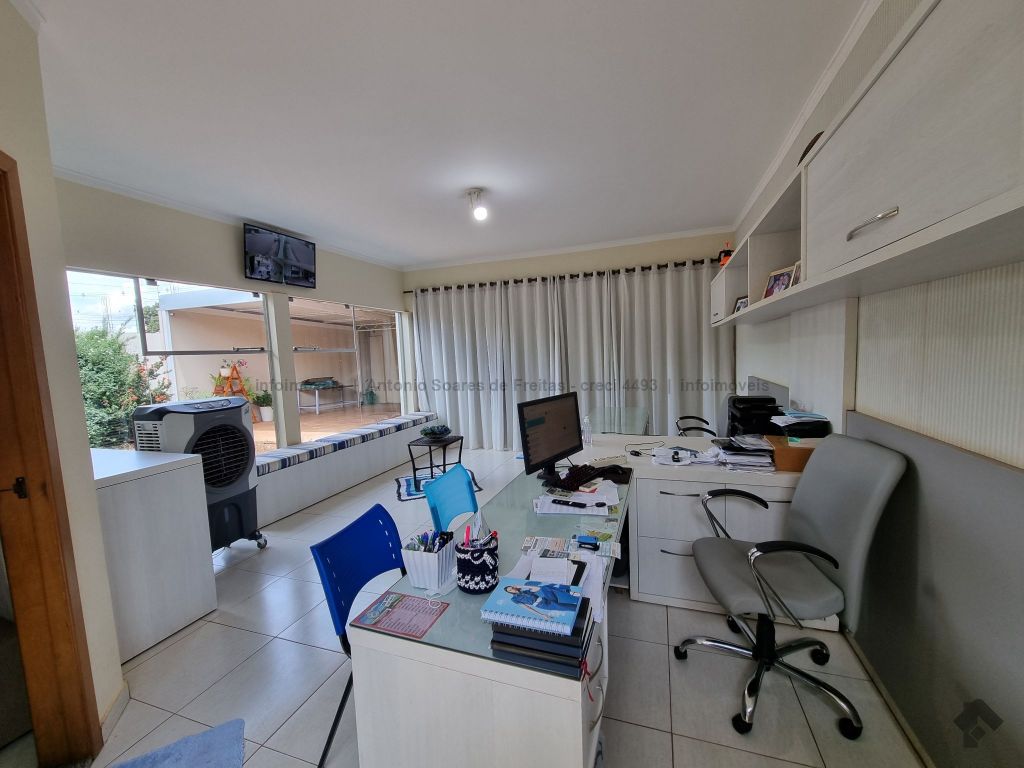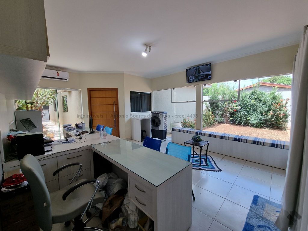 03 quartos, sendo 01 suite com a/e e banheiro com pia a/e box, 02 quartos com a/e, sala com 02 ambientes, banheiro social, espaço gourmet com churrasqueira e banheiro, acabamento fino, garagem coberta para 04 carros e 02 descoberto, 02 portão de elevação e jardim. 05 Ares condicionados, energia fotovoltaica 1.000kw.