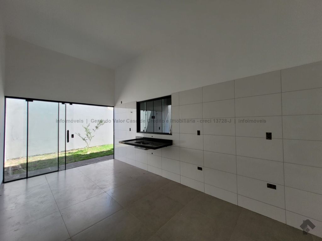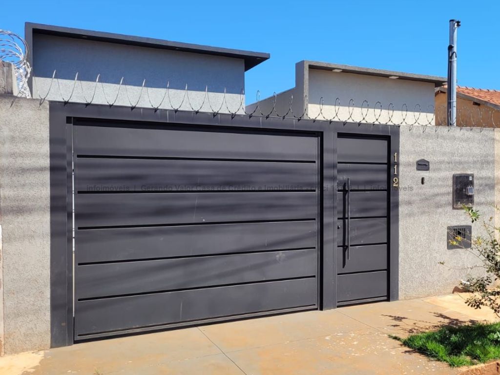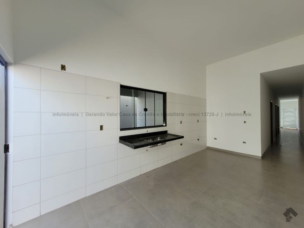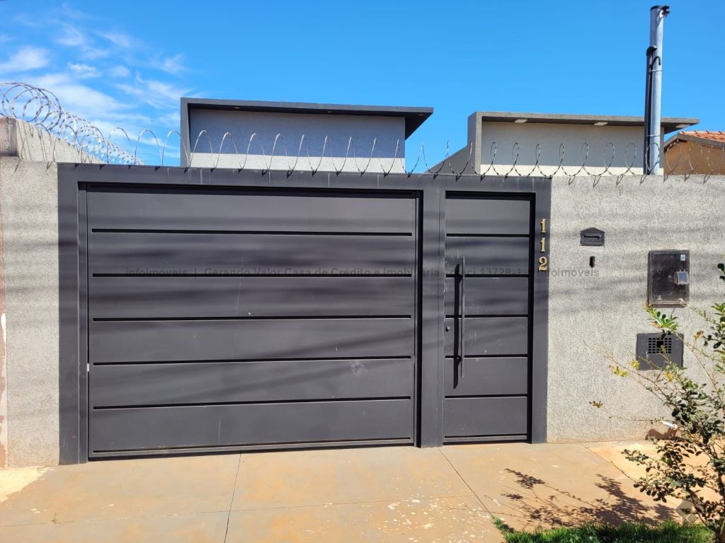 Sala, cozinha, 2 quartos, 1 suíte, 1 banheiro social, 1 banheiro auxiliar, área de serviço coberta, portão de elevação e portão social, concertina, corredor lateral, jardim, vaga para 3 carros.
