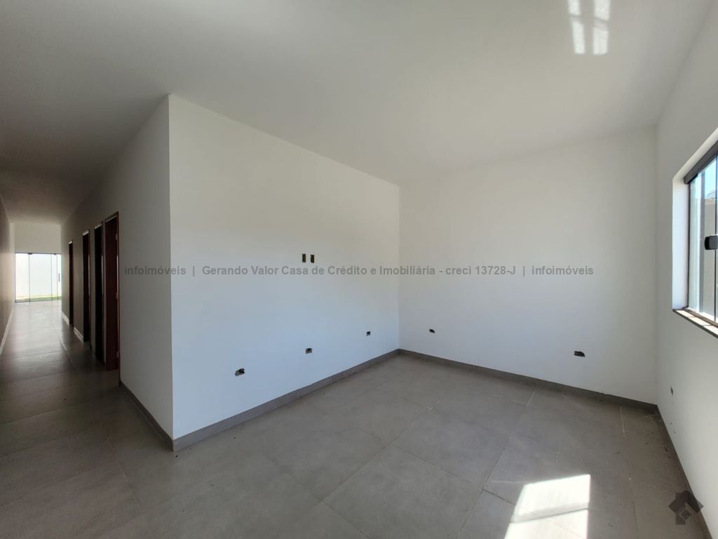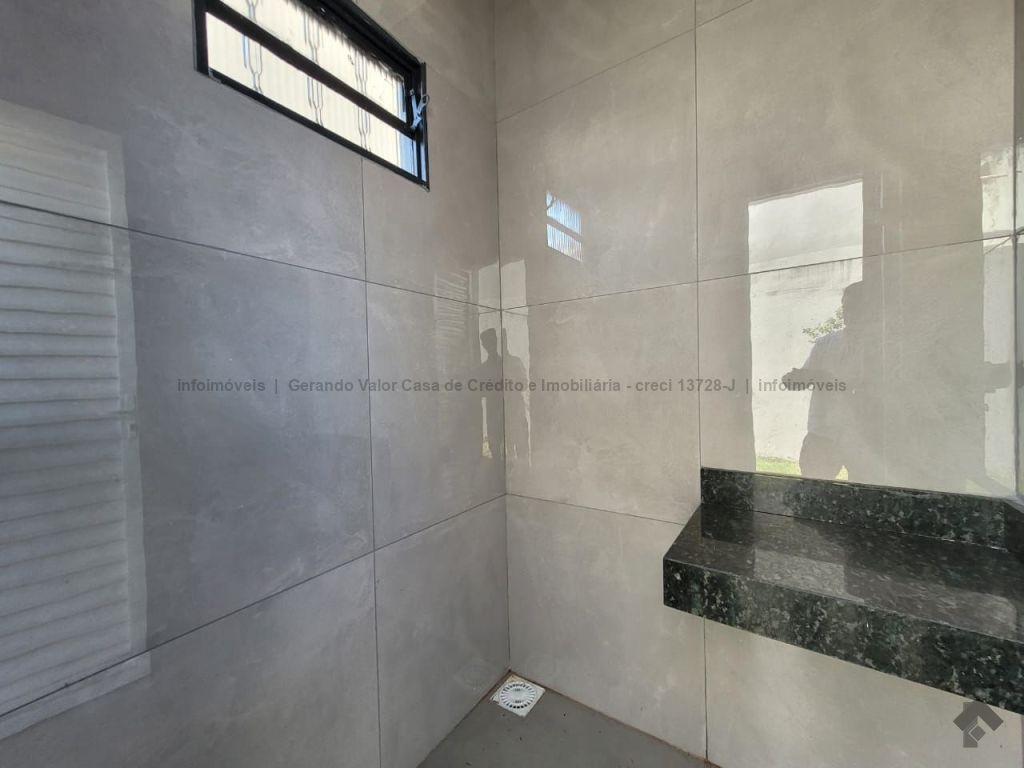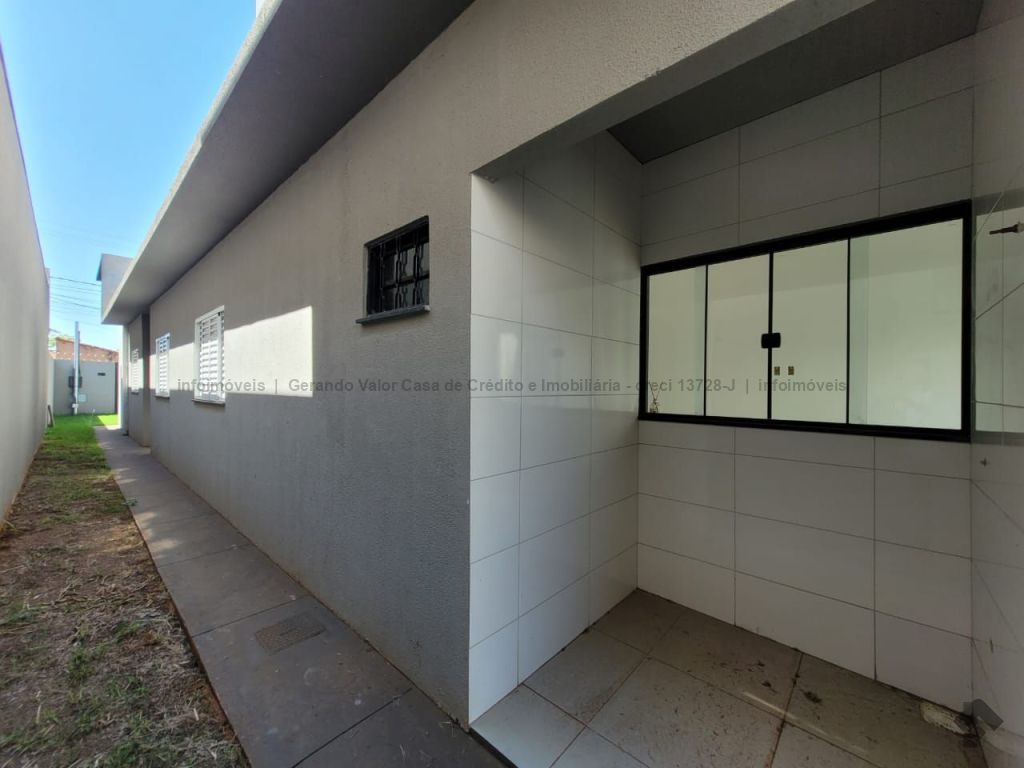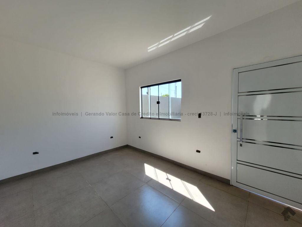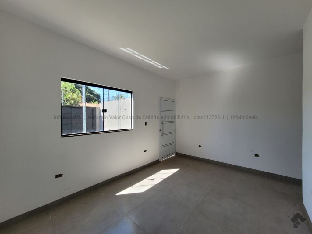Sala, cozinha, 2 quartos, 1 suíte, 1 banheiro social, 1 banheiro auxiliar, área de serviço coberta, portão de elevação e portão social, concertina, corredor lateral, jardim, vaga para 3 carros.
