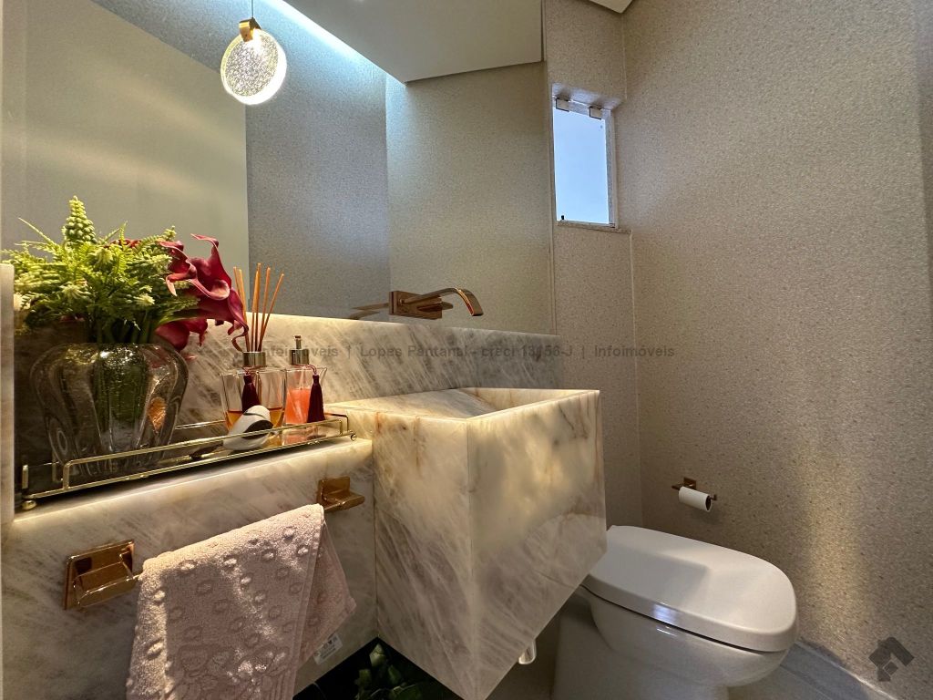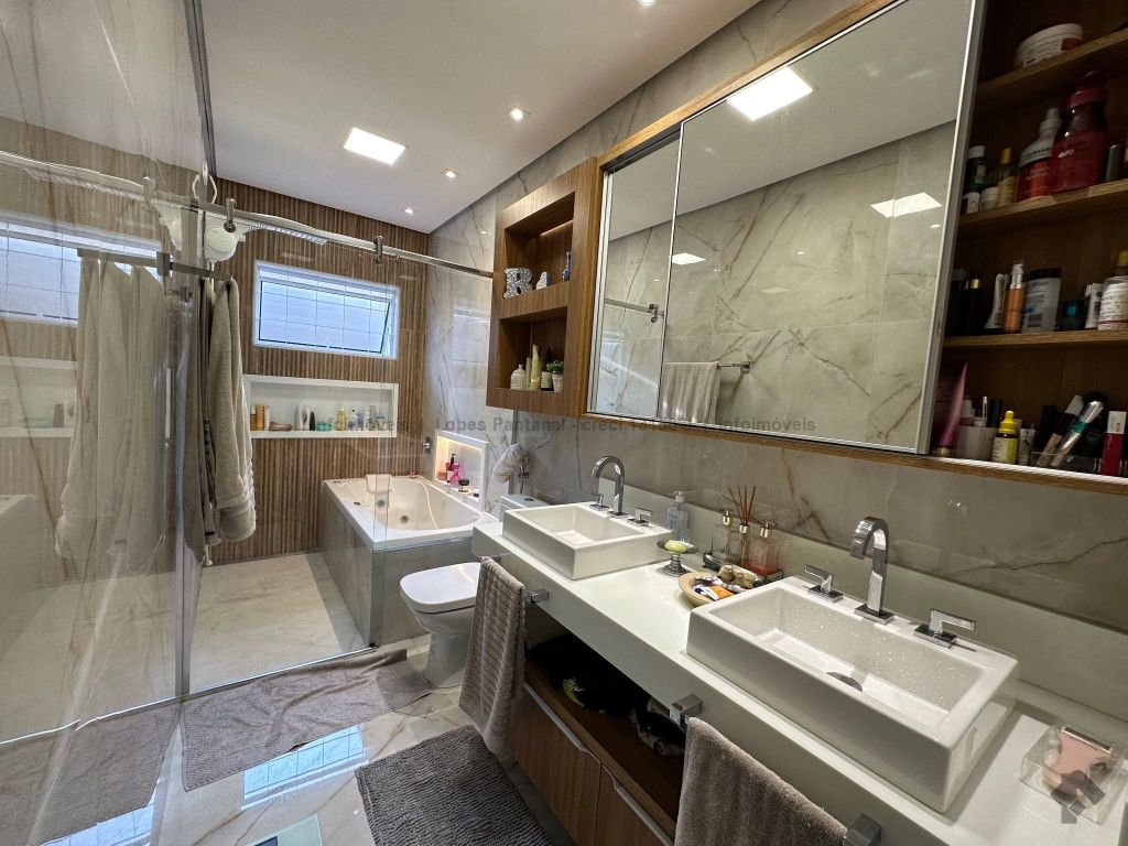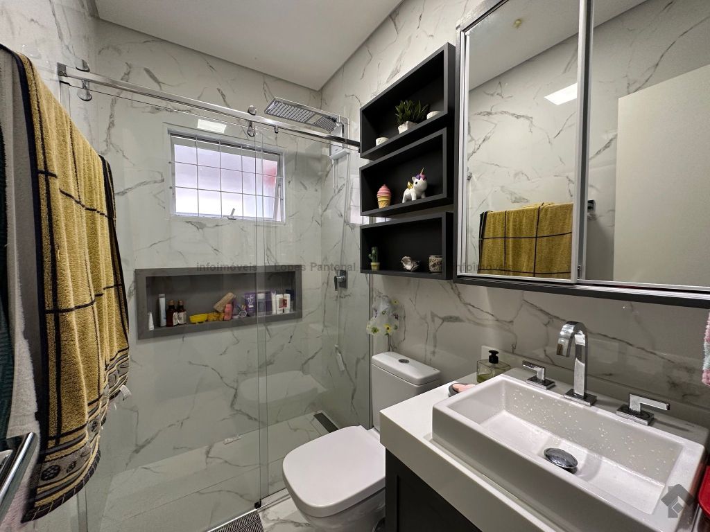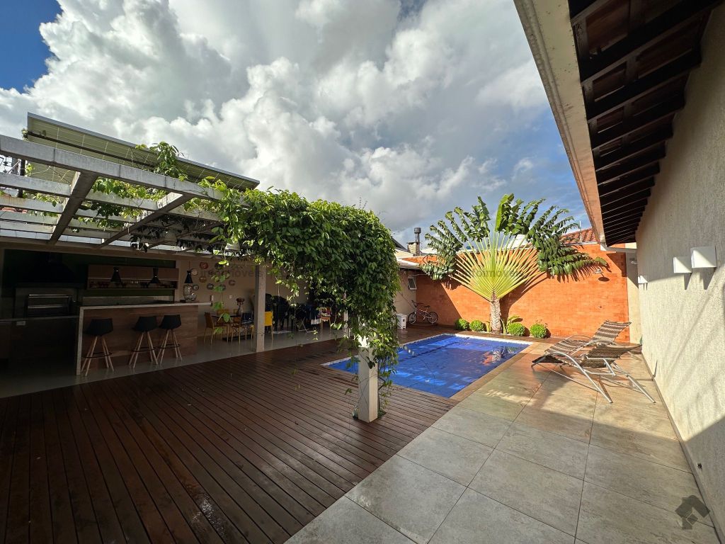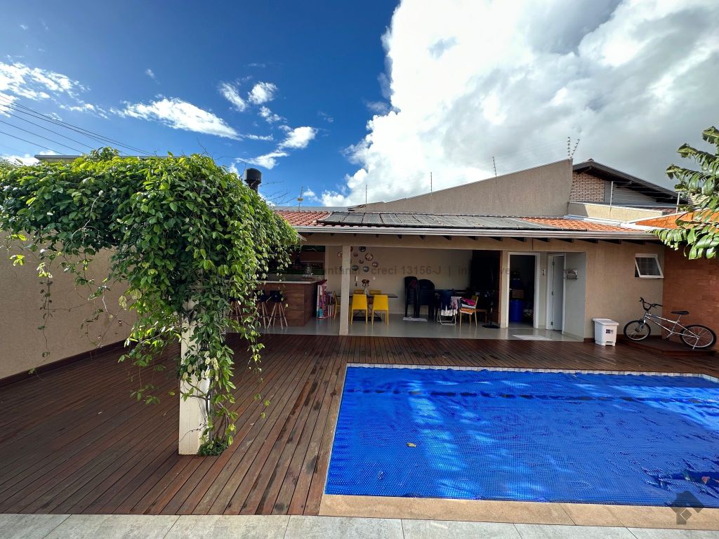 Casa térrea de esquina toda reformada com living amplo para até 3 ambientes. Lavabo com pia em ônix translúcida. Cozinha e lavanderia com armários. Suíte casal e dois dormitórios ricos em planejados. O banho da suíte de casal conta com banheira. Área de lazer com piscina aquecida, pergolado, espaço gourmet com churrasqueira tipo parilha, bancada, coifa, cooktop e refrigerador. Dormitório e banheiro externo. Placas fotovoltaica com geração de energia. Sistema de segurança com câmeras e cerca elétrica. Boiler de 200 litros.
