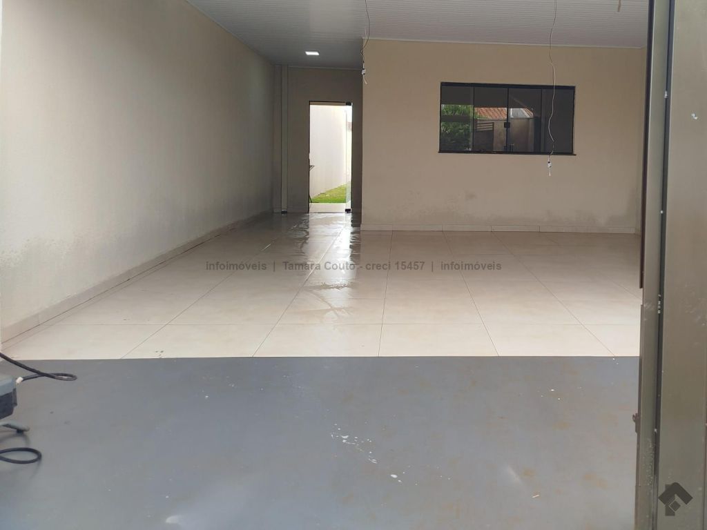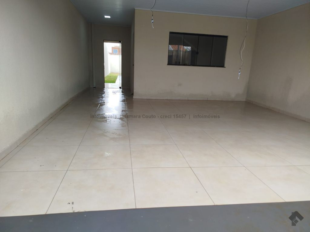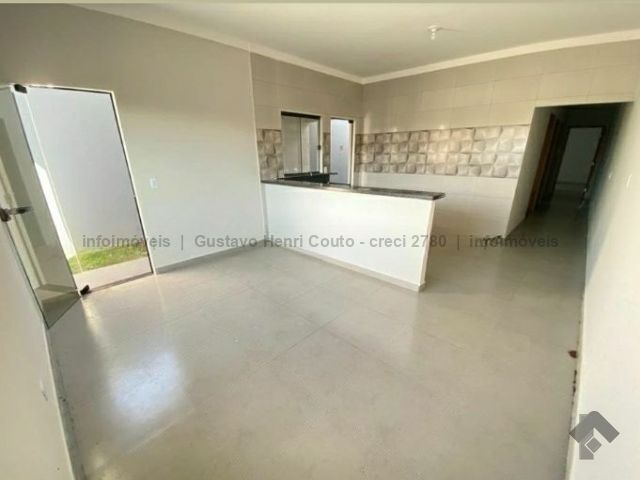 Casa nova contendo dois quartos amplos, um banheiro, uma suíte, cozinha moderna americana com saída para lavanderia coberta, sala ampla e quintal espaçoso, garagem coberta e varanda.