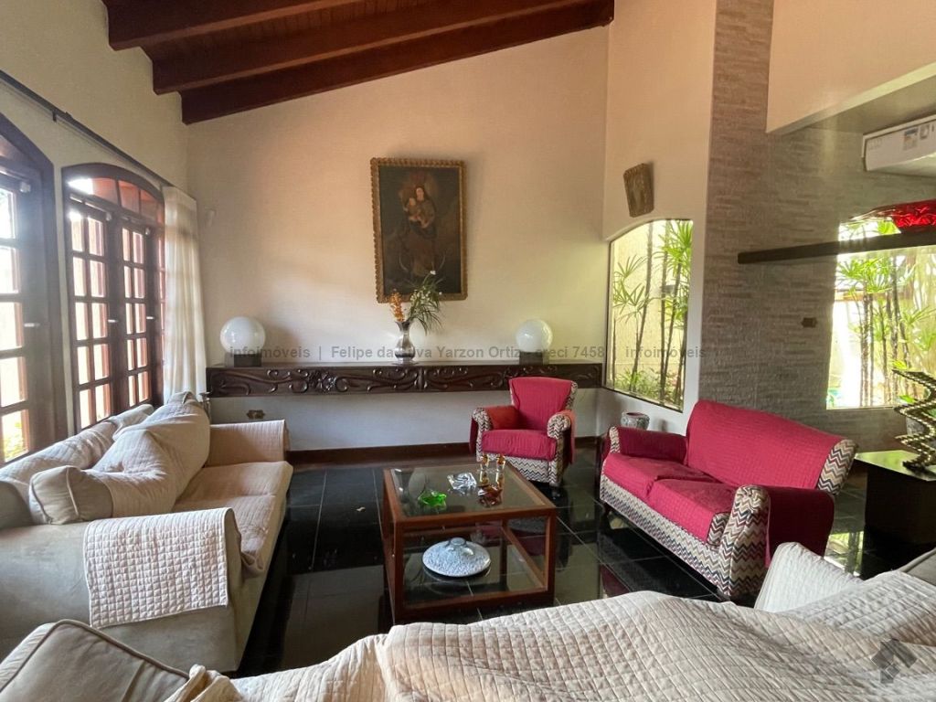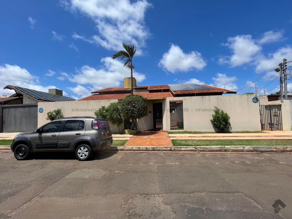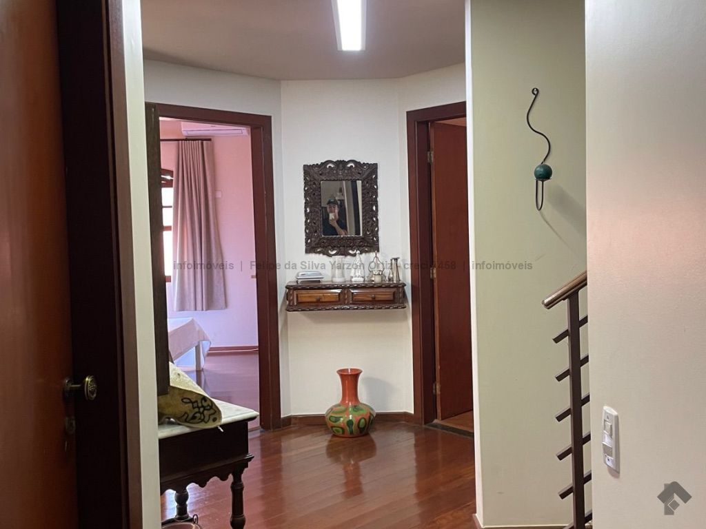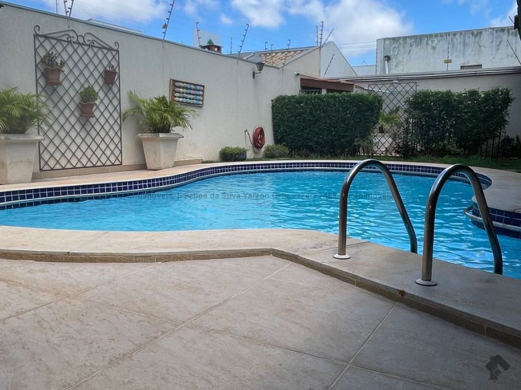 Casa ampla em rua tranquila e segura com sistema de monitoramento completo, possui 3 suítes amplas e planejadas, 2 quartos, 2 banheiros, garagem para 6 carros, living para vários ambientes, cozinha planejada, mezanino com escritório, piscina aquecida, área gourmet, sala de jantar, ar condicionado em todos os ambientes, energia fotovoltaica, estilo clássico.