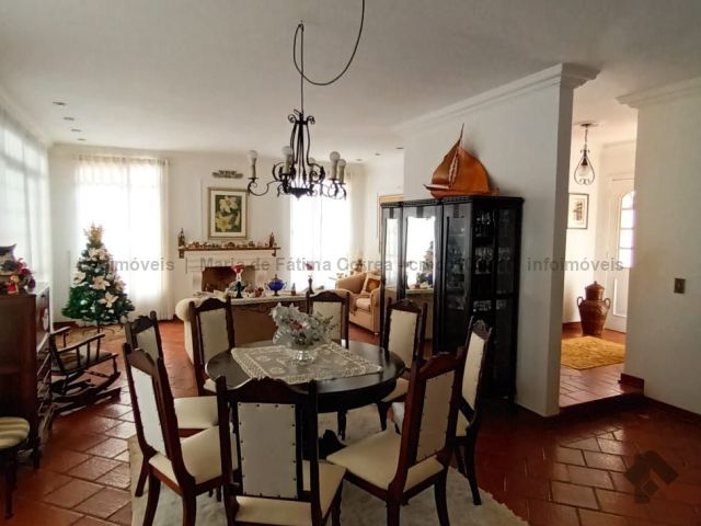 Sala para 2 ambientes, sala íntima, escritório, lavabo, 01 suíte máster, 01 apto, 02 quartos, 01 banho social, varanda com churrasqueira e banheiro, cozinha com copa, área de serviços com dependência de empregada, despensa, abrigo para 4 veículos.