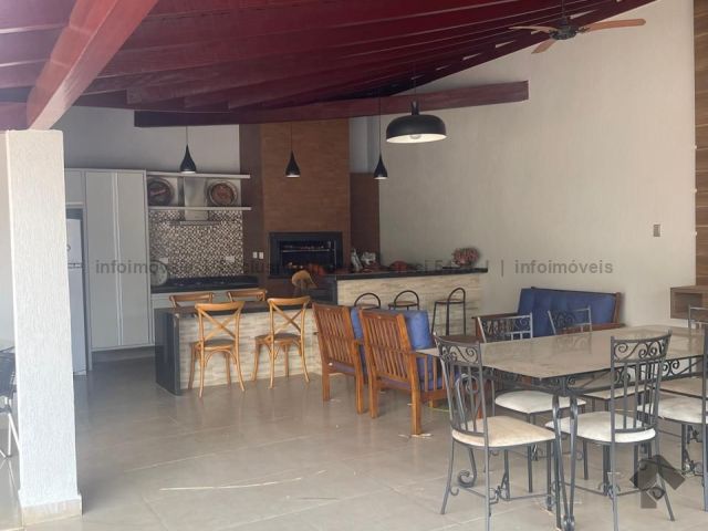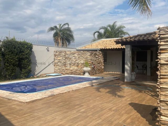 Possui área total de 480 m², área construída de 230 m², 1 suíte com armário embutido, 2 quartos com armário embutido, WC social, 1 lavabo, cozinha ampla com armário embutido, despensa, sala de estar e jantar bem arejada, sala de TV, quarto de despejo, banheiro de empregada, piscina aquecida com hidromassagem e cascata, ducha, churrasqueira e fogão a lenha revestido, espaço gourmet. Vagas de garagem: 2 vagas cobertas com amplo espaço, vagas descobertas para mais 2 carros. Quintal/área externa: área espaçosa na frente da casa com jardim, quintal nos fundos próximo da piscina, lavanderia/área de serviço cobertas, canil. Todos os quartos e salas da casa contêm ar-condicionado. Concertina e cerca elétrica.