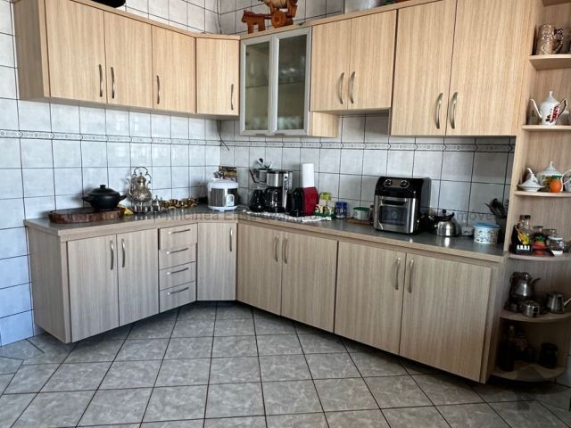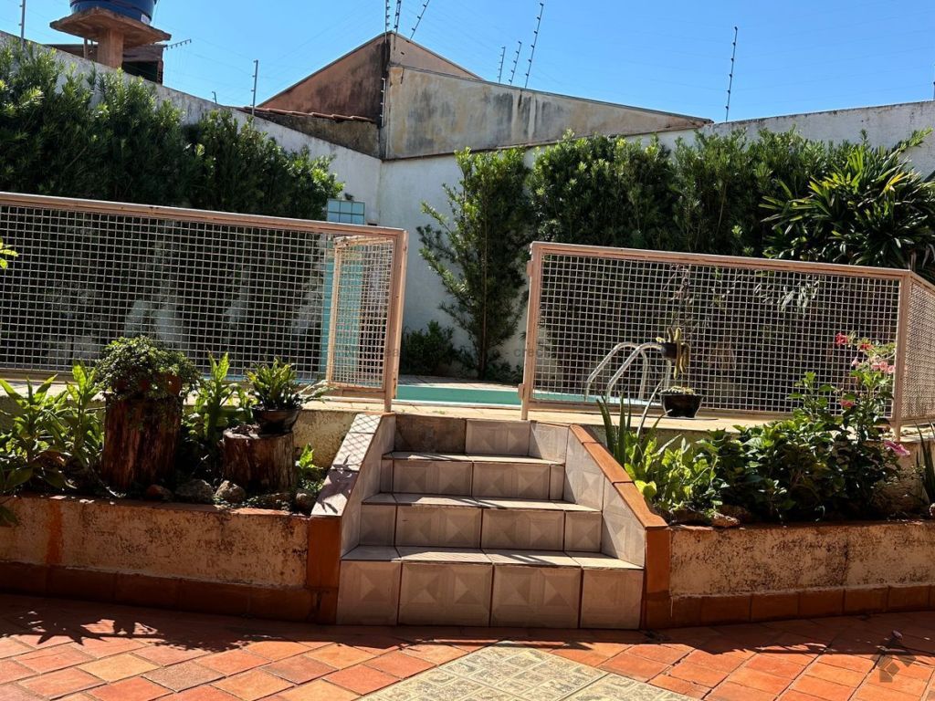 O imóvel possui uma suíte, dois dormitórios com banheiro social e ainda um mezanino que pode ser mais um quarto ou escritório, salas amplas, cozinha com armários embutidos, lavanderia, espaço gourmet com churrasqueira, além de uma pequena cozinha, piscina e banheiro. Garagem para quatro carros, além de poço artesiano e energia solar.
