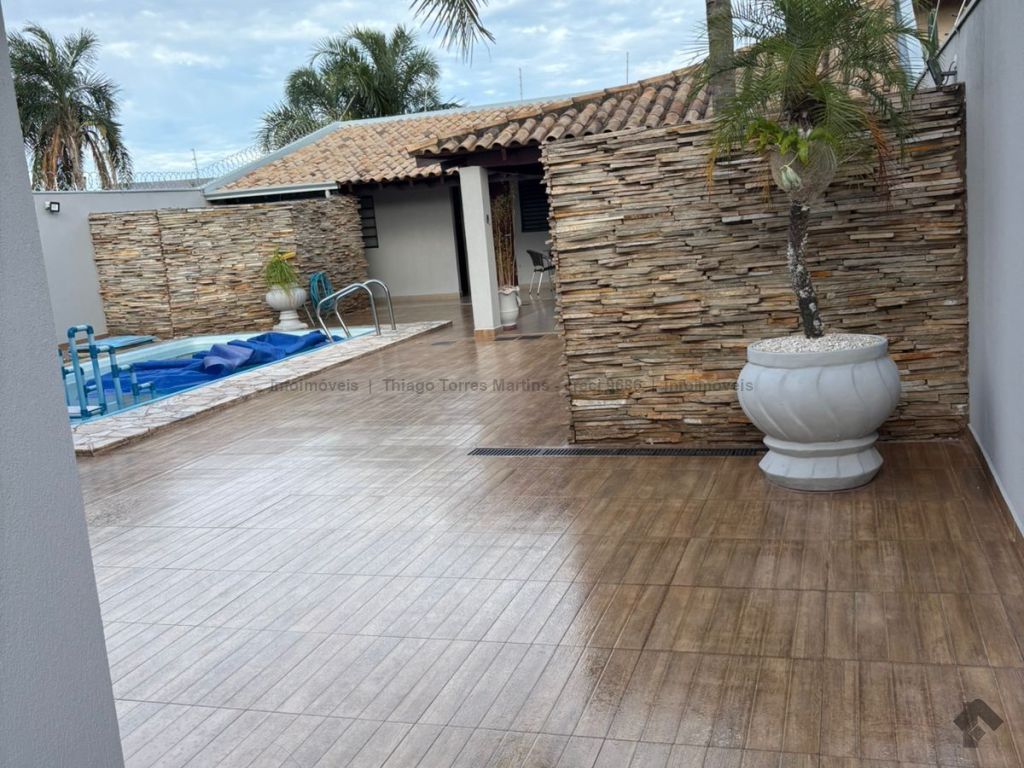 Linda casa térrea no Carandá Bosque, com 480 m² de terreno e 230 m² de área construída, composta por três quartos, sendo uma suíte, todos com armários embutidos, um banheiro social, sala com dois ambientes, sala de jantar, cozinha separada, despensa, piscina aquecida e área gourmet com fogão a lenha, além de um banheiro externo.