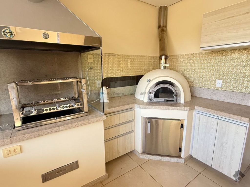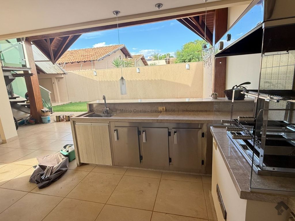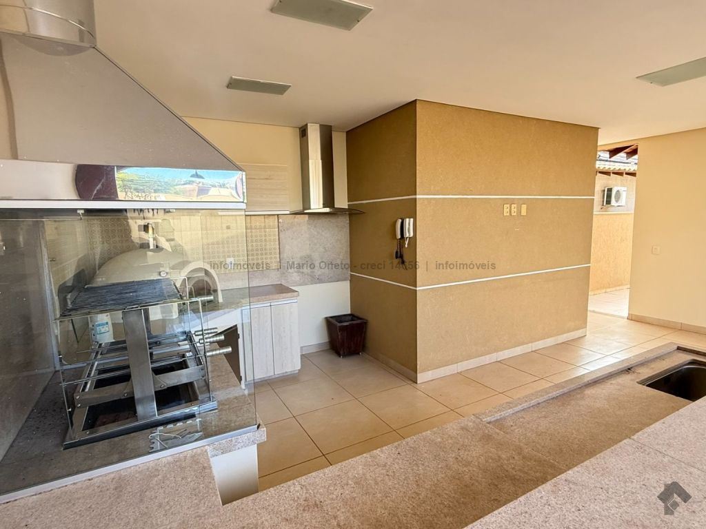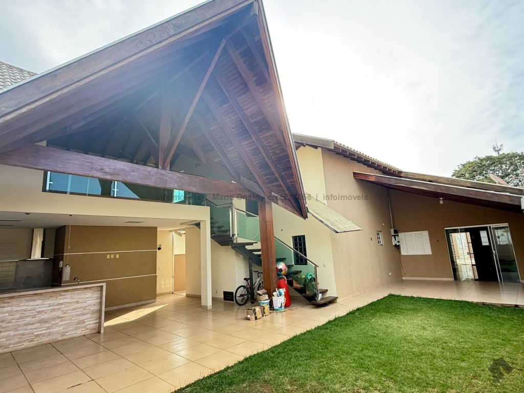 Cozinha planejada, escritório, lavabo, sala com 2 ambientes, sala de TV com planejados, jardim de inverno, 1 suíte master com closet, hidro e planejados, 1 suíte com planejados, 2 quartos, sendo 1 com planejados, 1 banheiro social com planejados. Área gourmet em madeira de lei, com churrasqueira, forno a lenha, balcão de refrigeração, exaustor para fogão e banheiro. Mezanino com mesa de sinuca e depósito. Garagem para 03 carros. Energia solar de 1100 kWh e boiler de 800 litros.