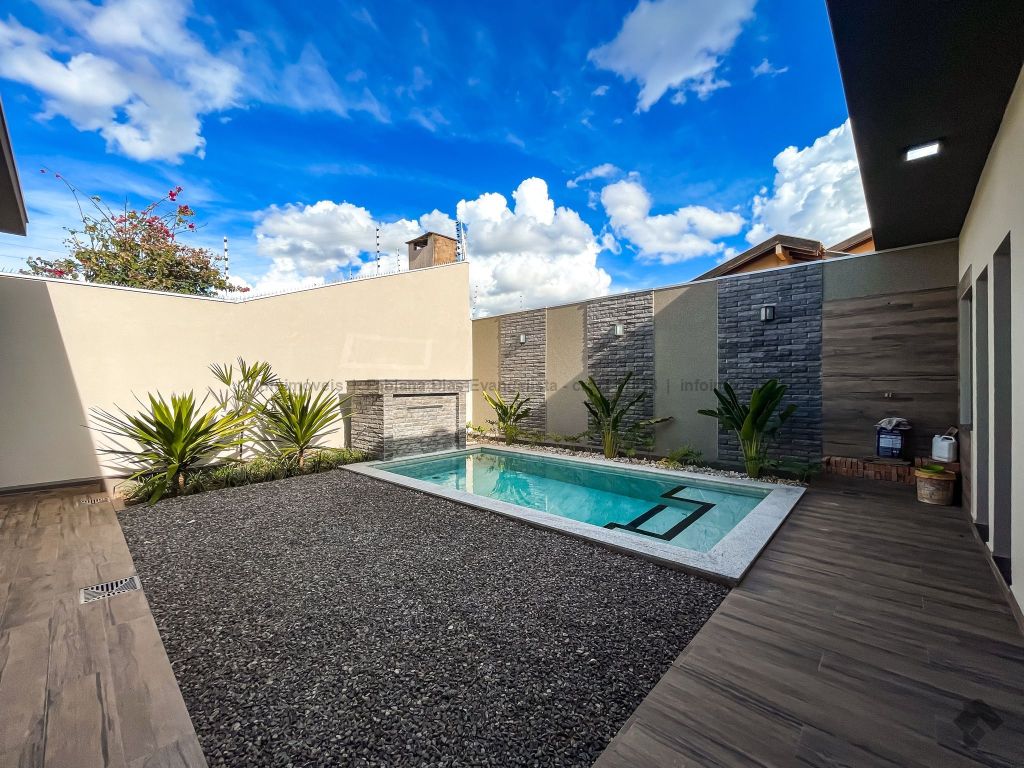 Com 3 suítes, sendo uma com closet, além de um quarto pequeno nos fundos, o espaço é perfeito para famílias. Conta com 4 banheiros, sala para 2 ambientes, cozinha, lavanderia e despensa. A área gourmet é integrada a uma piscina aquecida com cascata e hidromassagem, proporcionando momentos de lazer. A garagem comporta 4 carros, sendo 2 cobertos. Com aquecimento solar e energia fotovoltaica de 800W, este imóvel oferece sustentabilidade e eficiência.