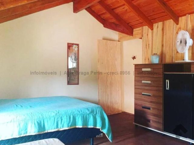 Cada chalé é completamente mobiliado, com Wi-Fi e estacionamento privativo. Chalés 1 e 2 têm mezanino, enquanto os chalés 3 e 4 oferecem suíte. Com uma área total de terreno de 300 m² (15x20m).