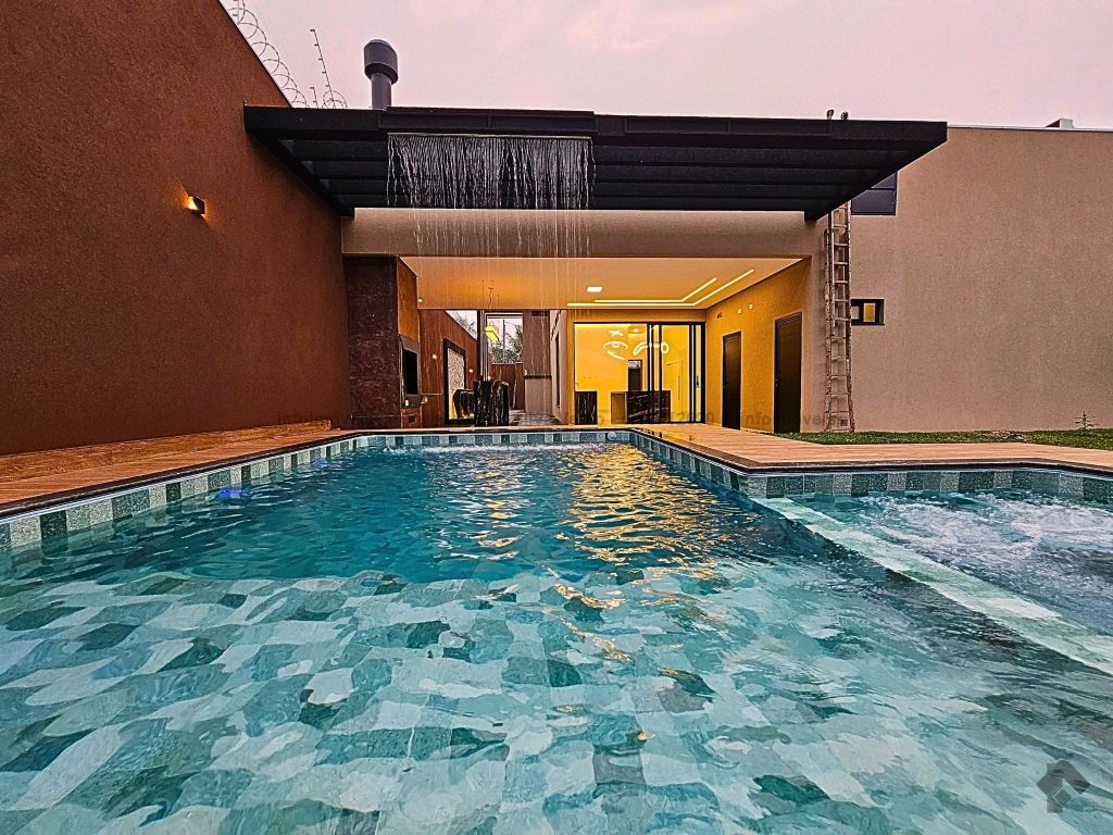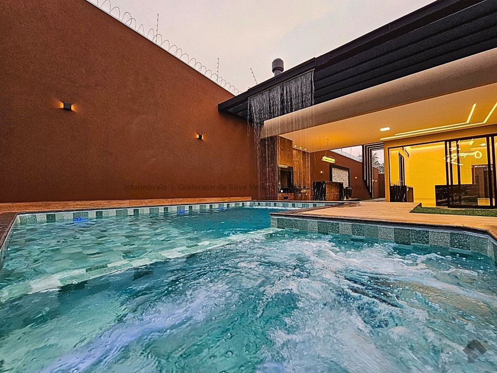 Espetacular imóvel de alto padrão na região do centro, fachada imponente e moderna, 480 m² de área total, 216 m² de área construída, piscina com 24 m², 3 vagas de garagem, 3 suítes, sendo a principal máster com closet, persiana automatizada, closet e banheiro com hidromassagem, escritório amplo, lavabo interno, sala ampla com 2 ambientes, pé direito alto, lustre e integrada, cozinha integrada com ampla bancada em mármore e ilha, espaço gourmet completo e com fino acabamento, WC externo, piscina de 24 m² com hidromassagem e cascata suspensa, aquecimento solar já instalado, projeto luminotécnico moderno com LED, porta com fechadura eletrônica e projeto de paisagismo.