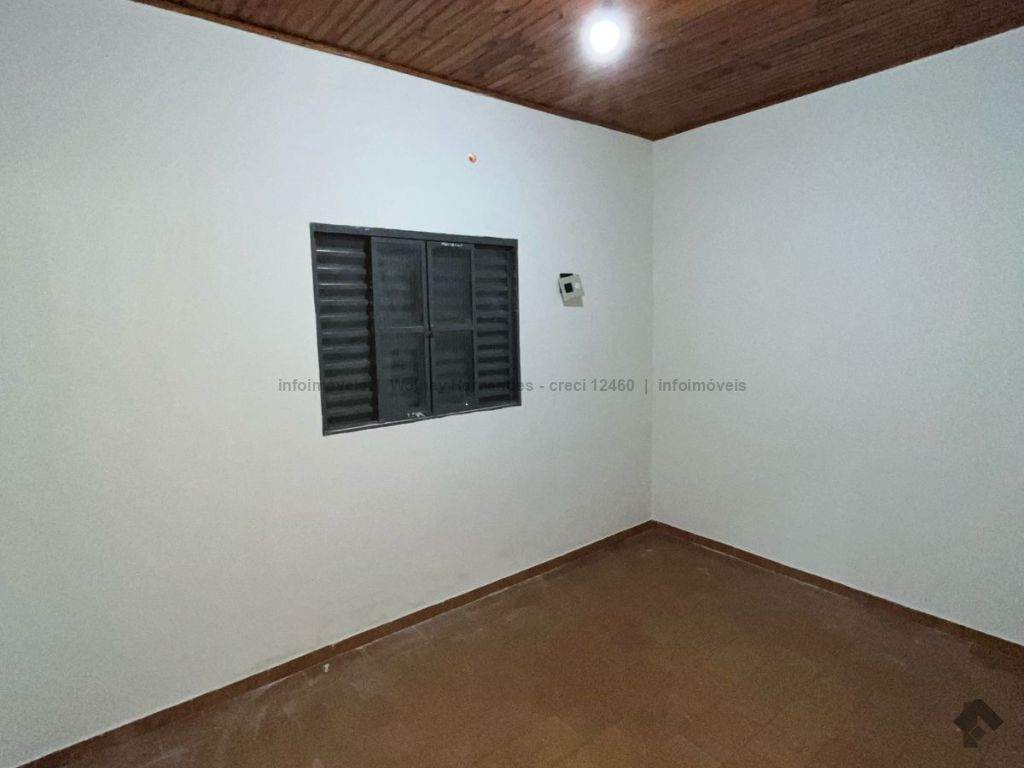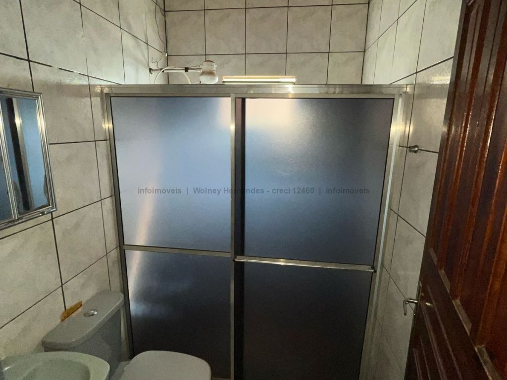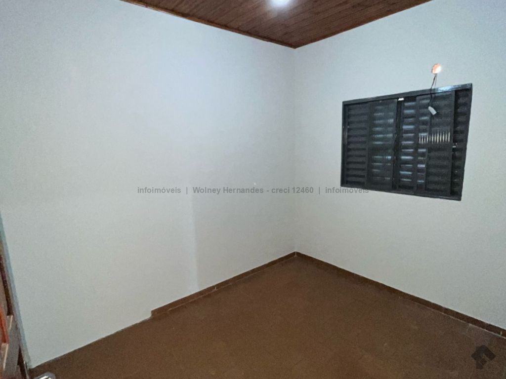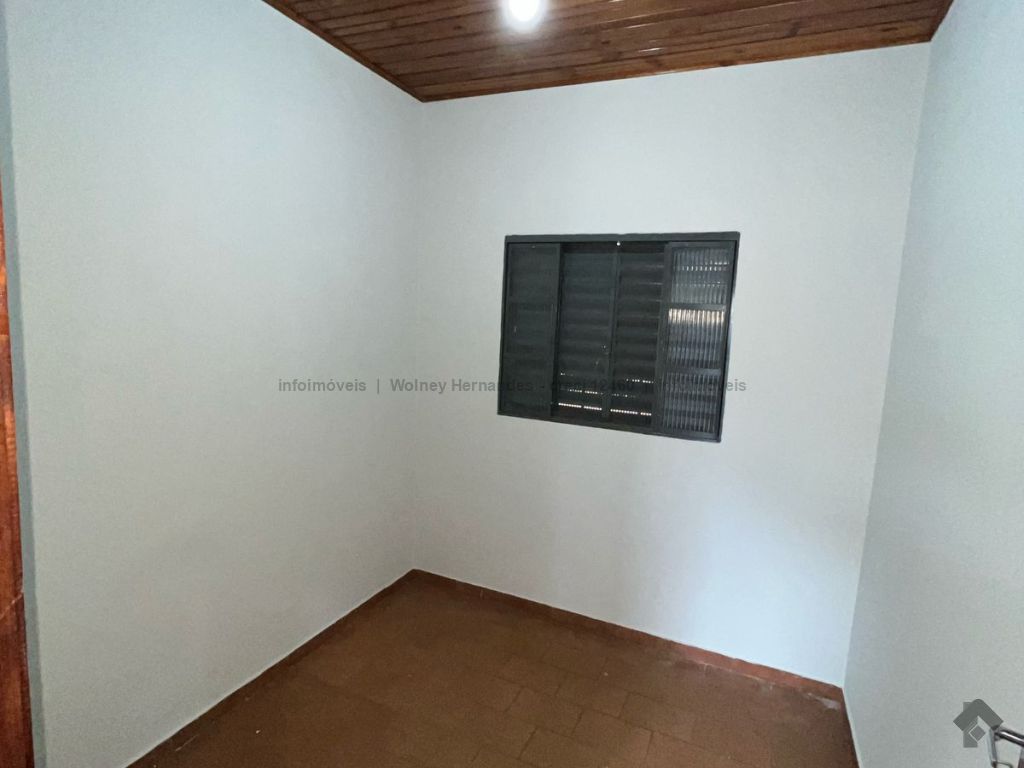 Casa com três quartos, sala, cozinha, banheiro social, varanda ampla com lavanderia nos fundos e quarto com banheiro nos fundos, separado da casa.