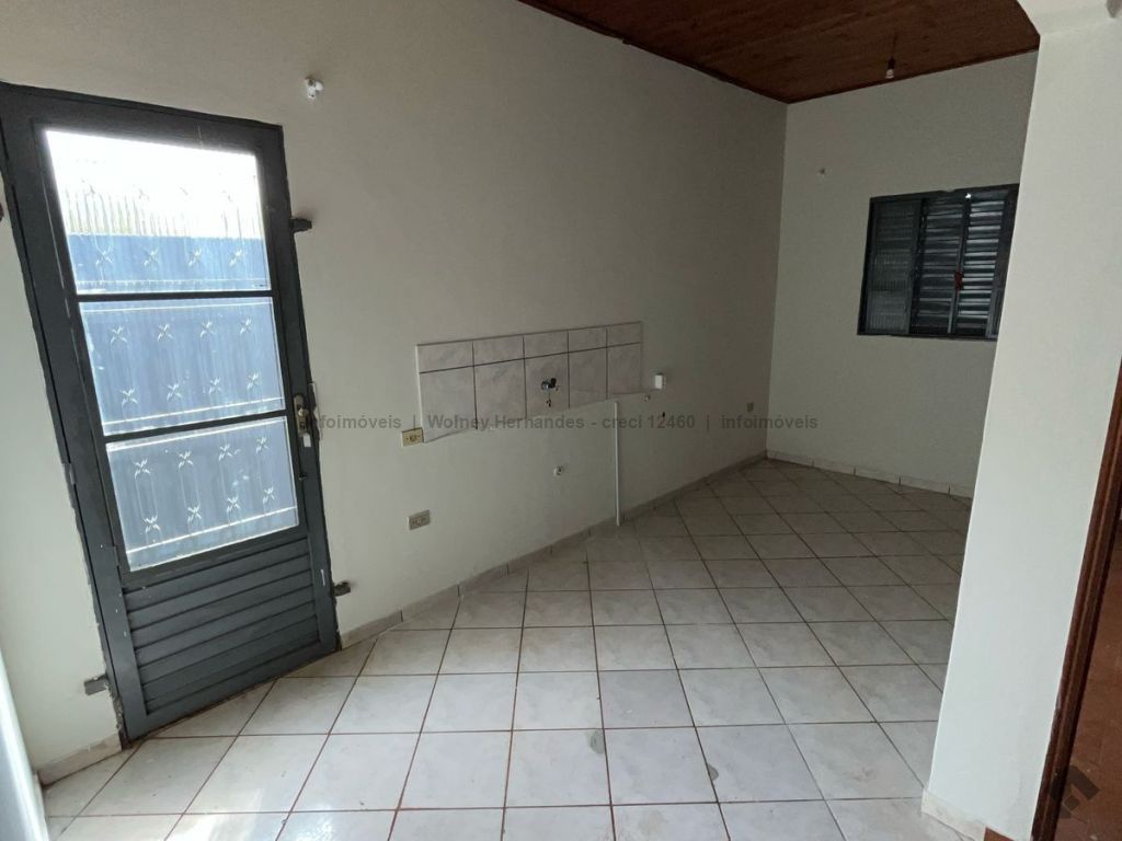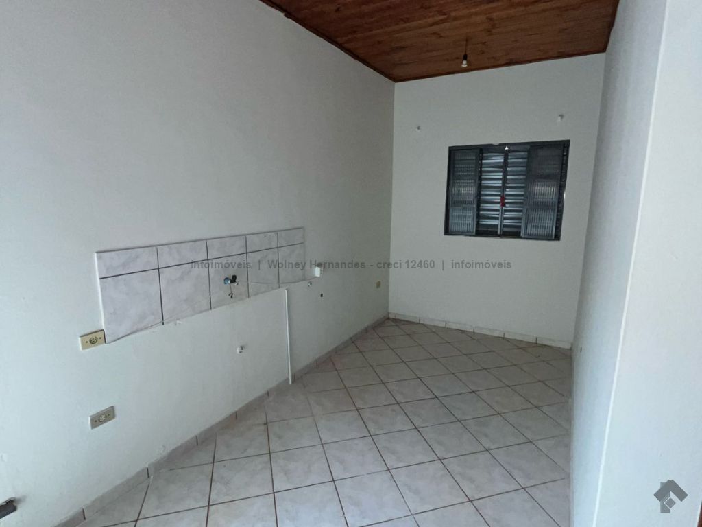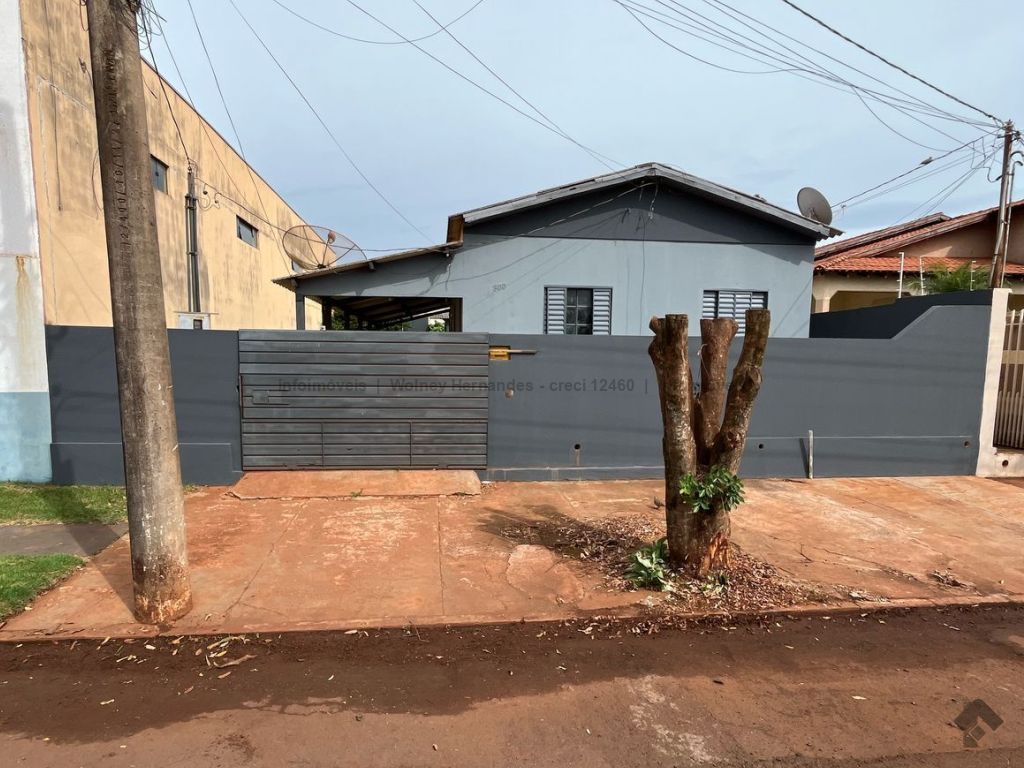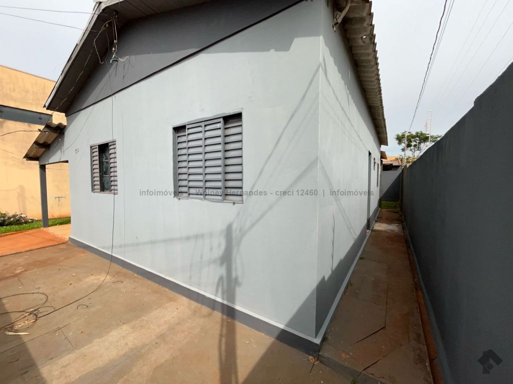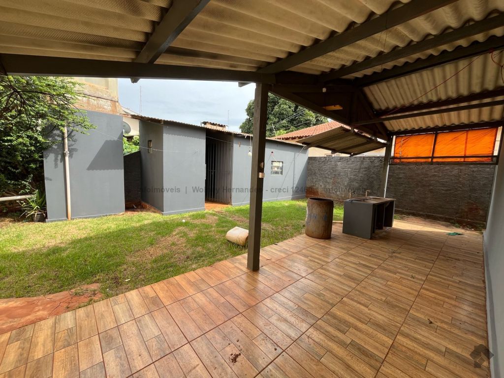 Casa com três quartos, sala, cozinha, banheiro social, varanda ampla com lavanderia nos fundos e quarto com banheiro nos fundos, separado da casa.