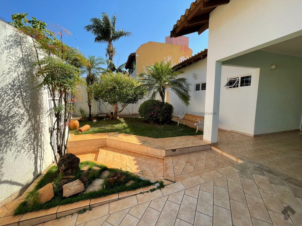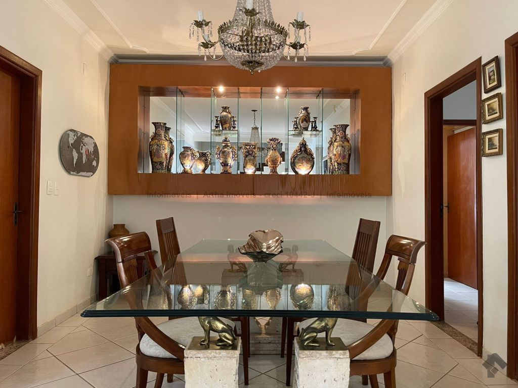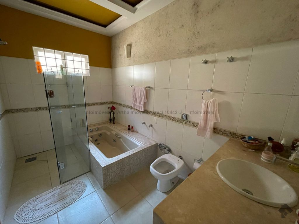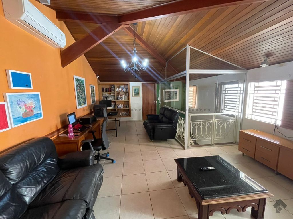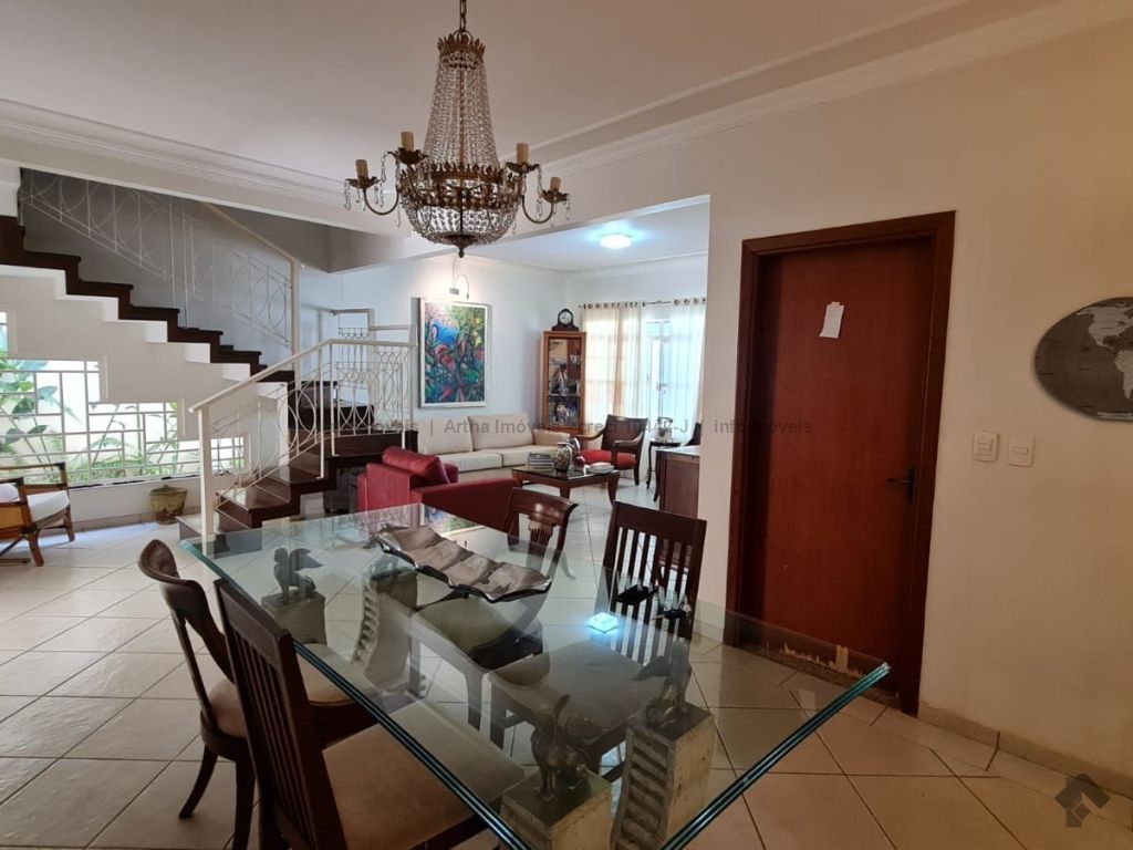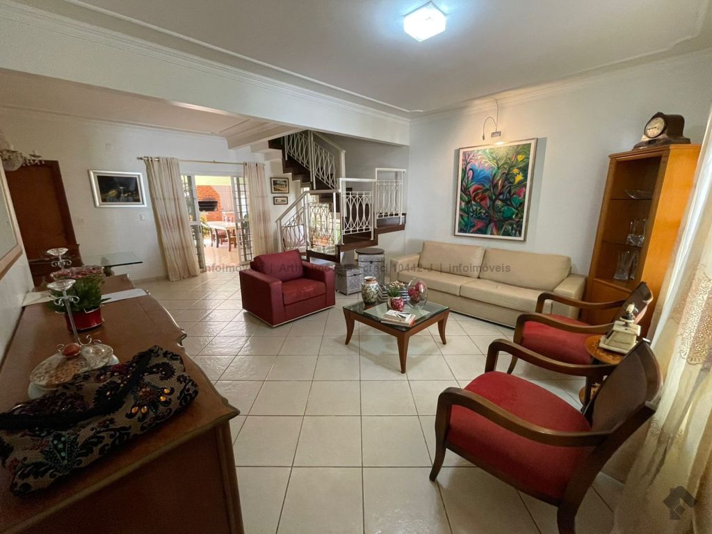 Casa térrea com mezanino muito bem localizada, possui: sala em 2 ambientes, mezanino com escritório e depósito, copa e cozinha espaçosas com armários embutidos, lavanderia próximo à cozinha, quarto de empregado com armários e banheiro, lavabo, hall de circulação dos quartos, 01 suíte espaçosa com armários planejados e banheira de hidromassagem, 01 apartamento amplo com armários planejados, 02 quartos amplos, 02 banheiros social, varanda gourmet com churrasqueira, integrada com sala, piscina em alvenaria, 01 banheiro para atender a piscina e o gourmet, 04 vagas de garagem, sendo 2 vagas cobertas, box para depósito no corredor lateral.