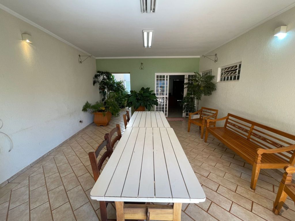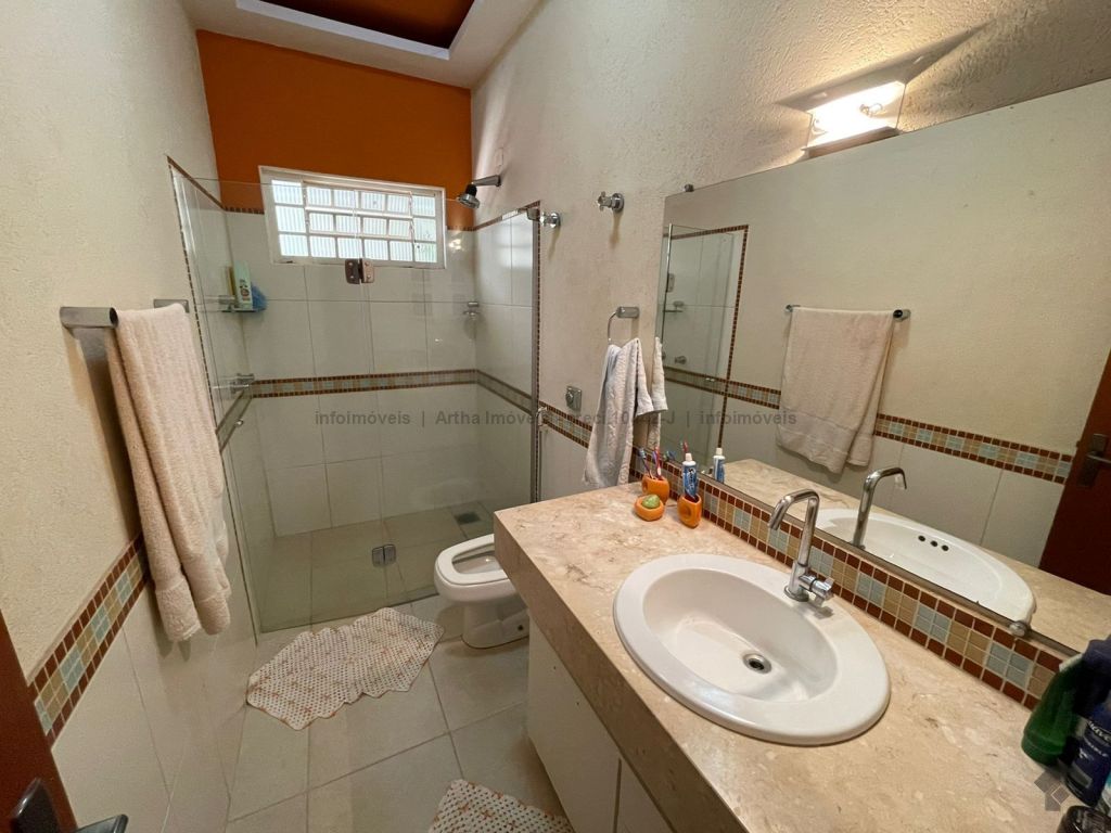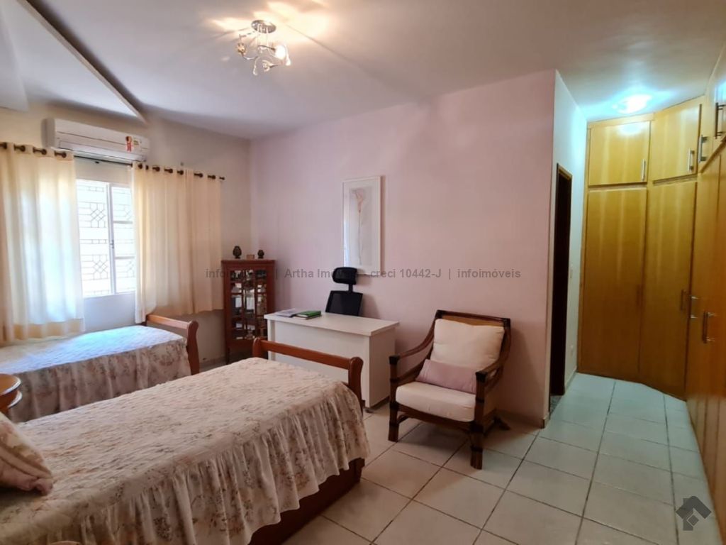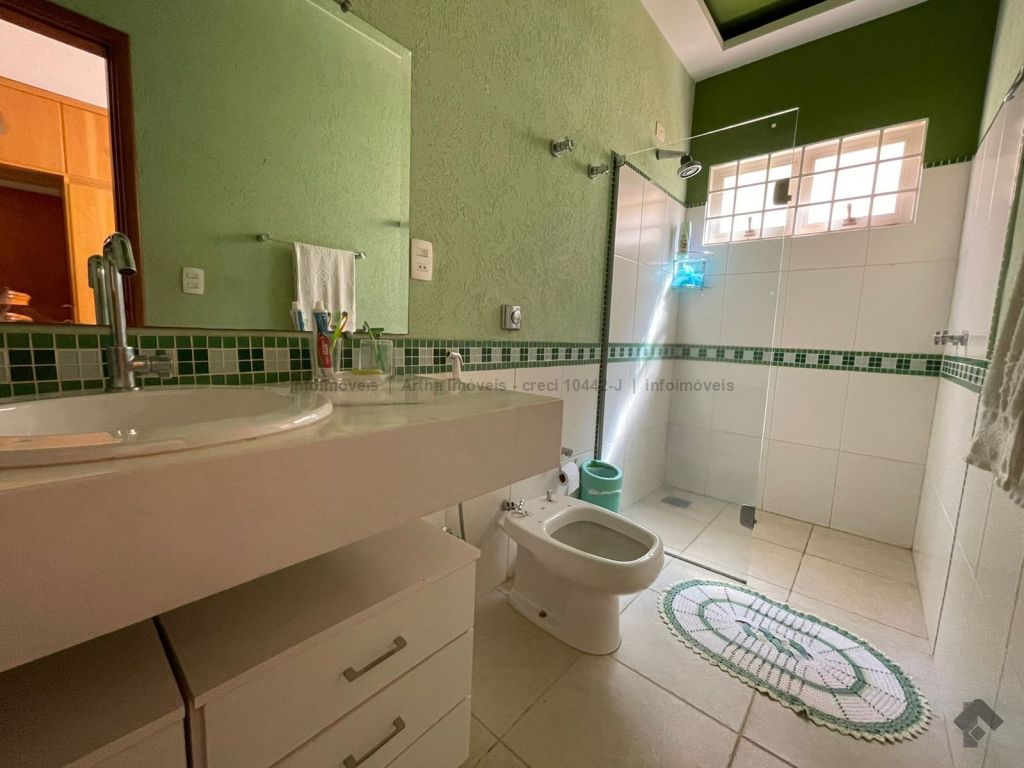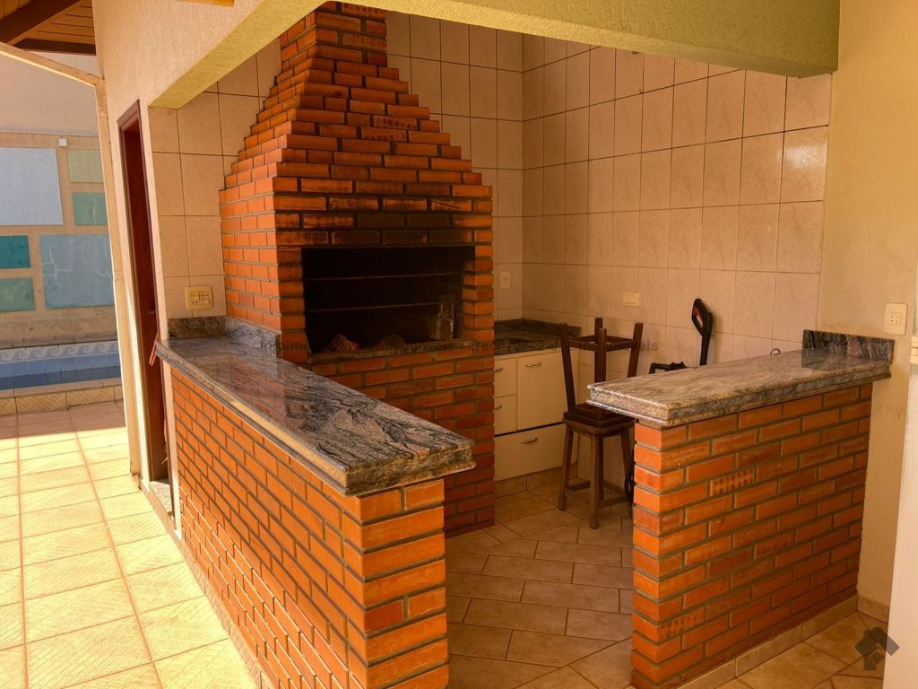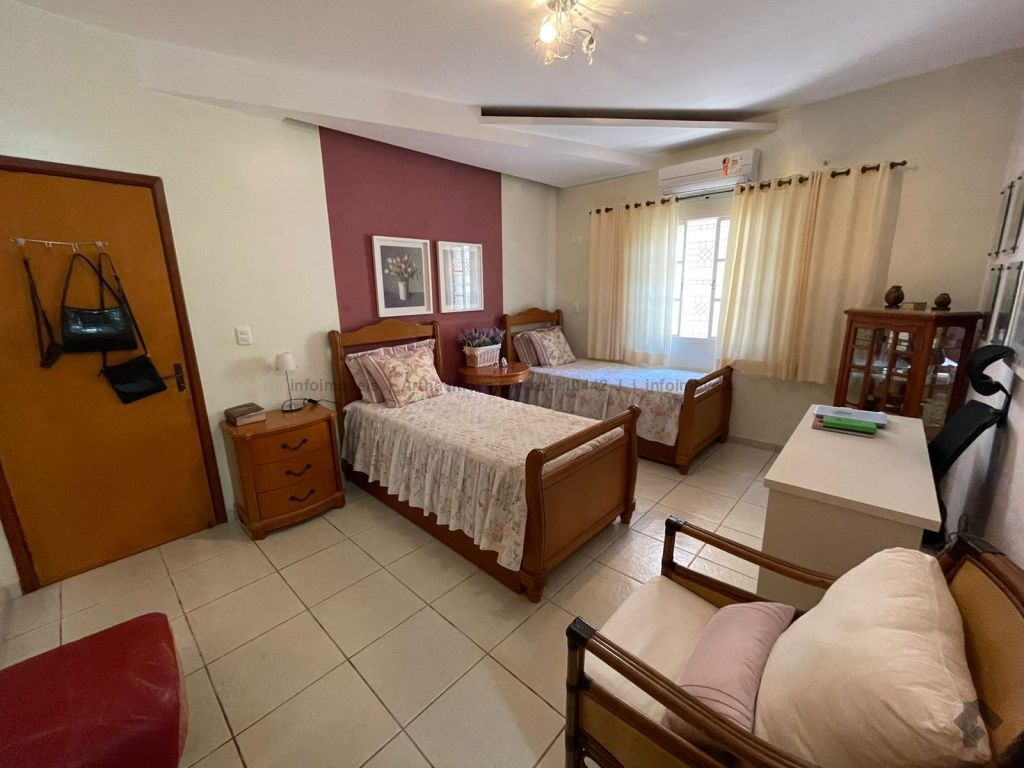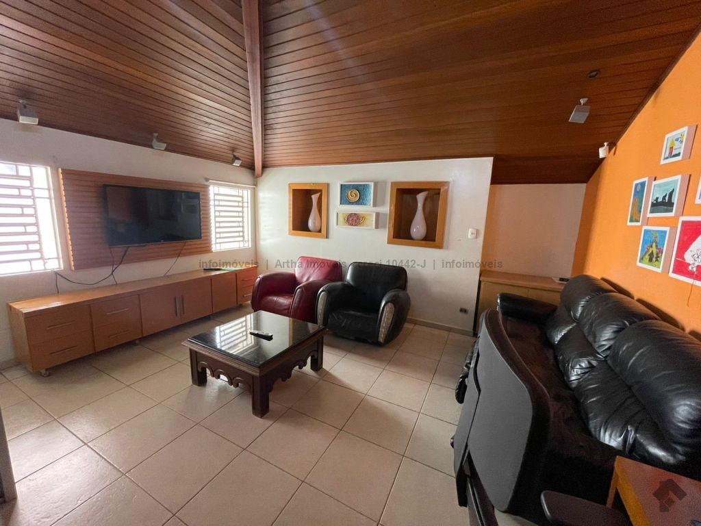 Casa térrea com mezanino muito bem localizada, possui: sala em 2 ambientes, mezanino com escritório e depósito, copa e cozinha espaçosas com armários embutidos, lavanderia próximo à cozinha, quarto de empregado com armários e banheiro, lavabo, hall de circulação dos quartos, 01 suíte espaçosa com armários planejados e banheira de hidromassagem, 01 apartamento amplo com armários planejados, 02 quartos amplos, 02 banheiros social, varanda gourmet com churrasqueira, integrada com sala, piscina em alvenaria, 01 banheiro para atender a piscina e o gourmet, 04 vagas de garagem, sendo 2 vagas cobertas, box para depósito no corredor lateral.