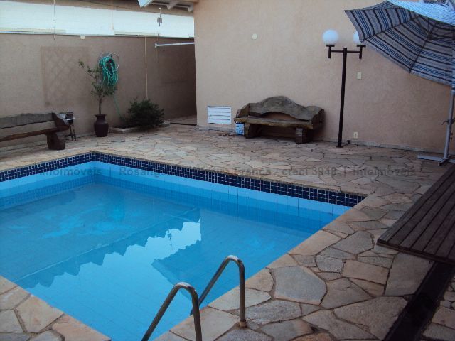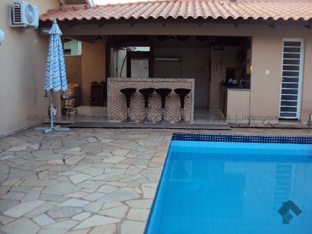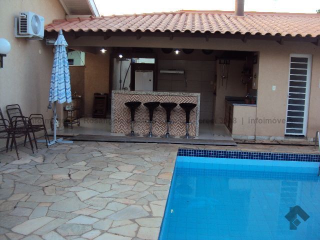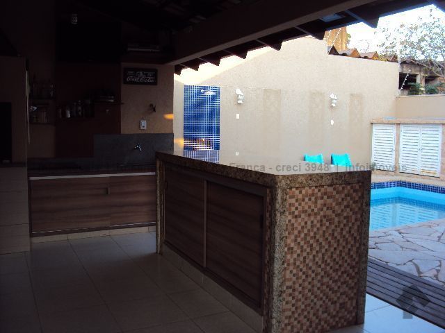 Imóvel em terreno amplo composto de 2 ambientes de sala, lavabo, suíte com armários, dois quartos com armários, WC social, cozinha planejada, área de serviço com armários, varanda gourmet com churrasqueira, piscina, edícula com um cômodo e WC. Completo em sistema de proteção com câmeras, alarme, cerca elétrica e concertina.