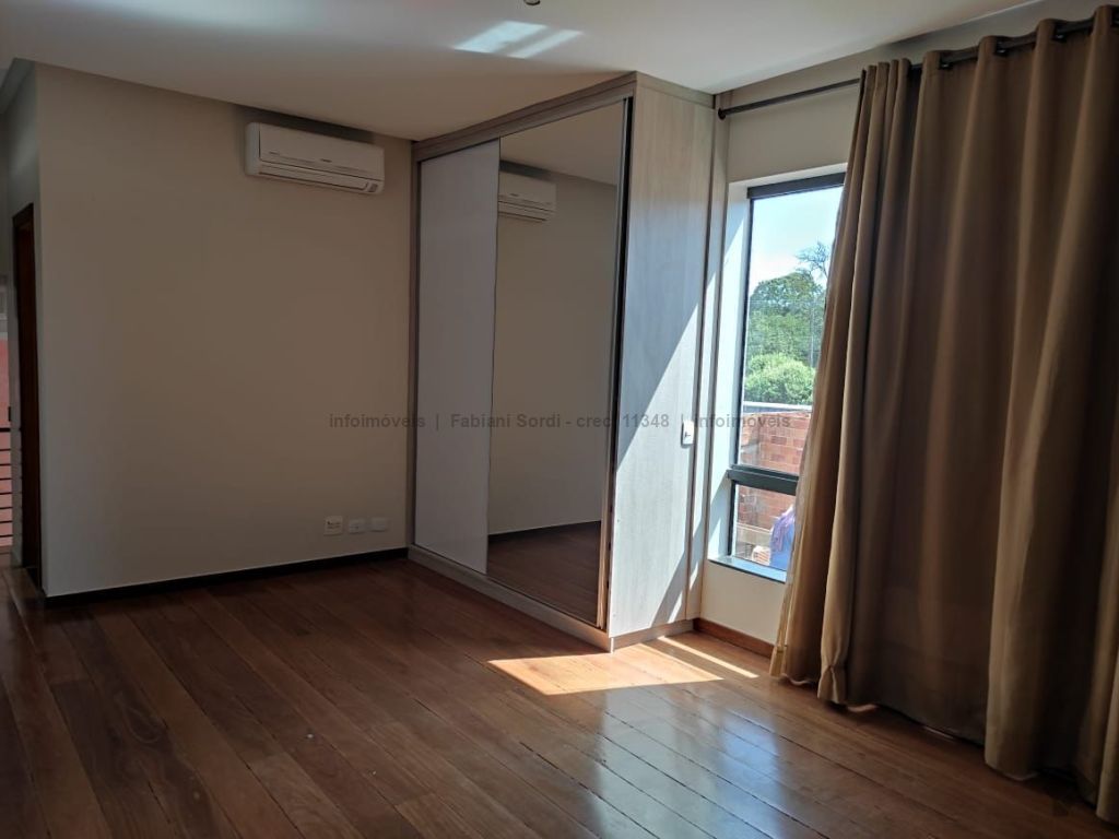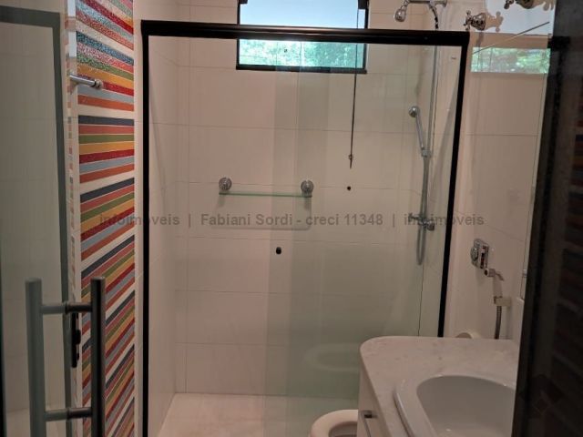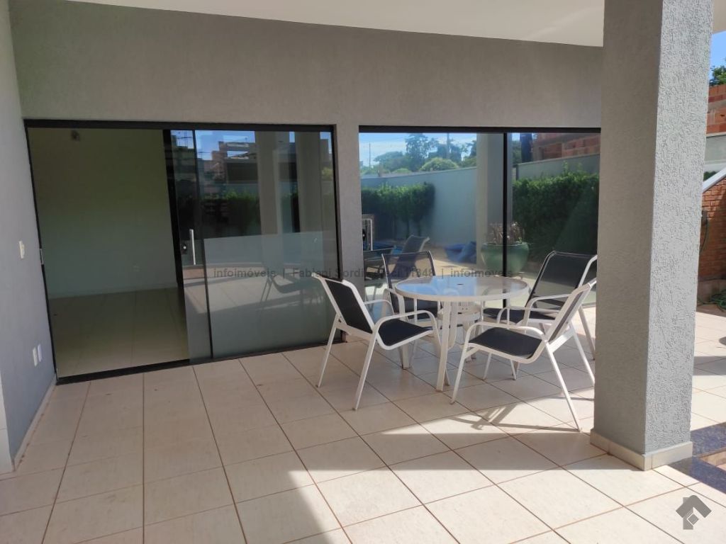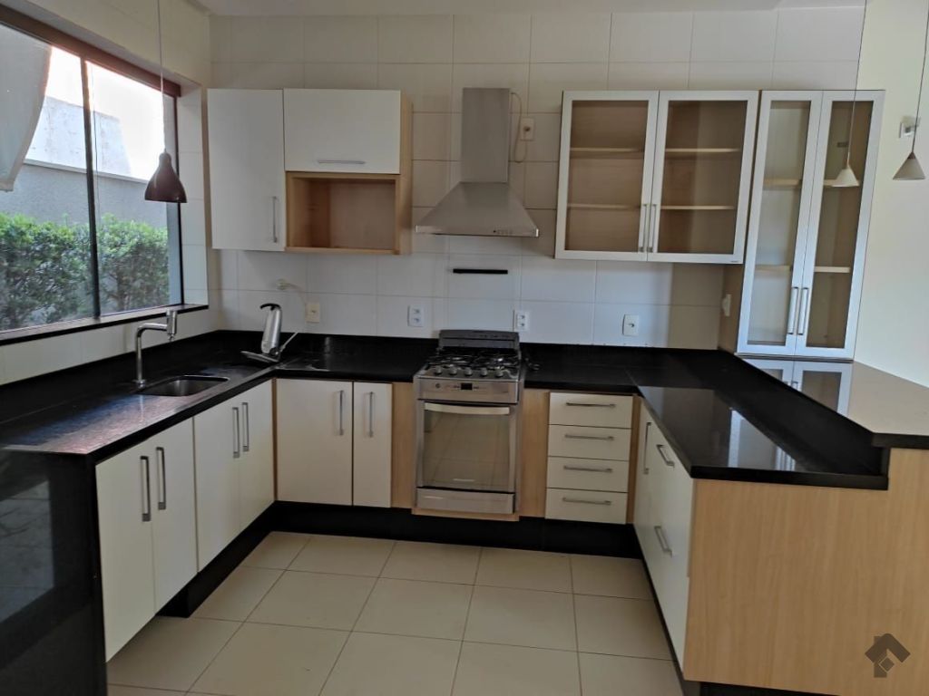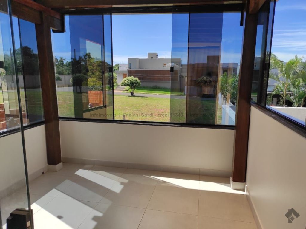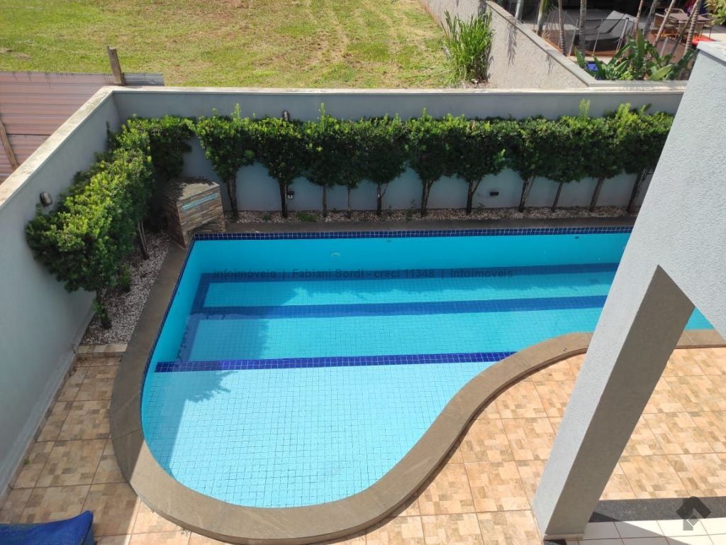 Casa em condomínio com 4 suítes, sendo 1 no mezanino com sacada e 1 com banheira, sala de estar, sala de TV, cozinha com planejados e espaço integrado de jantar, lavabo, varanda gourmet com churrasqueira, piscina e sauna.