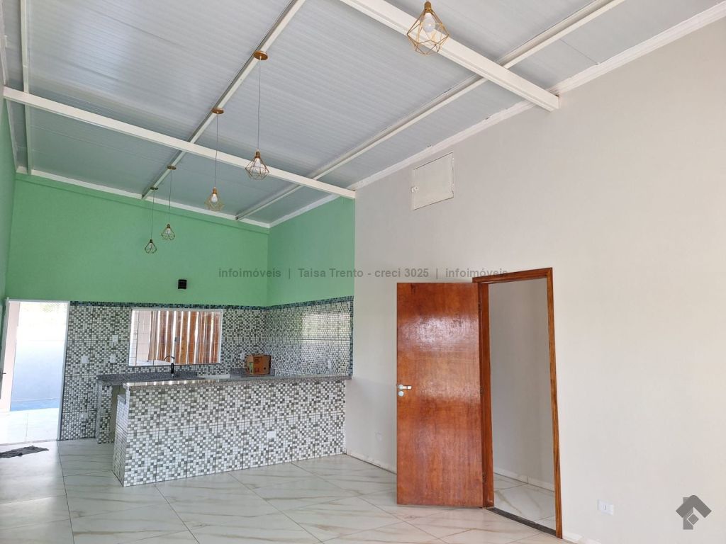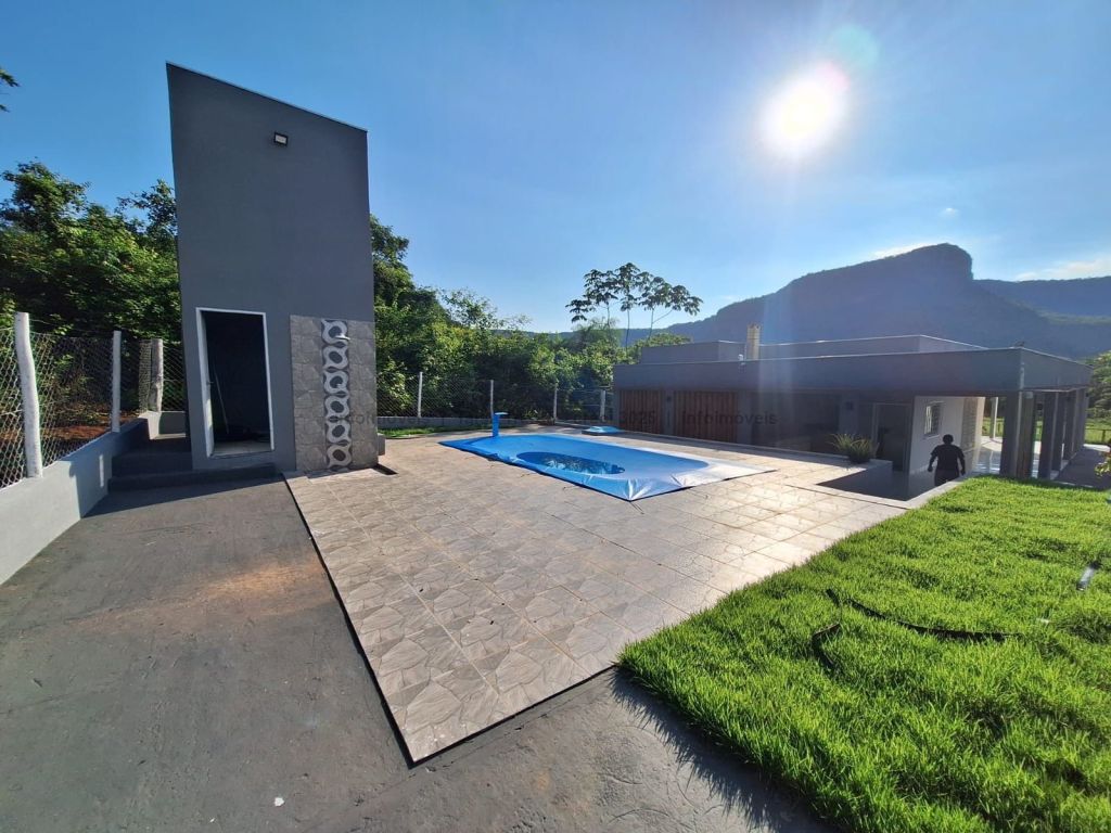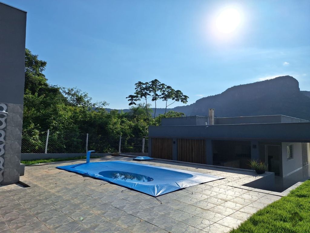 Casa em condomínio, com ampla sala integrada à cozinha, com ar condicionado, três suítes, varanda, piscina, caixa dágua 5 mil litros, poço artesiano, varanda gourmet com churrasqueira, balcão, fogão à lenha e forno, depósito, todos os ambientes com ar condicionado, box Blindex, árvores frutíferas plantadas, toda forrada com isotérmico oferecendo conforto e segurança, câmeras, internet, redário, fossa ecológica. Desfrute deste paraíso, sala com três ambientes, um banheiro e área de serviço.