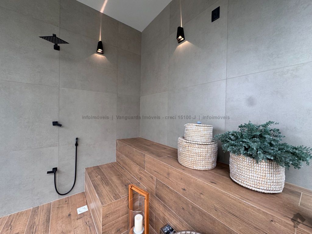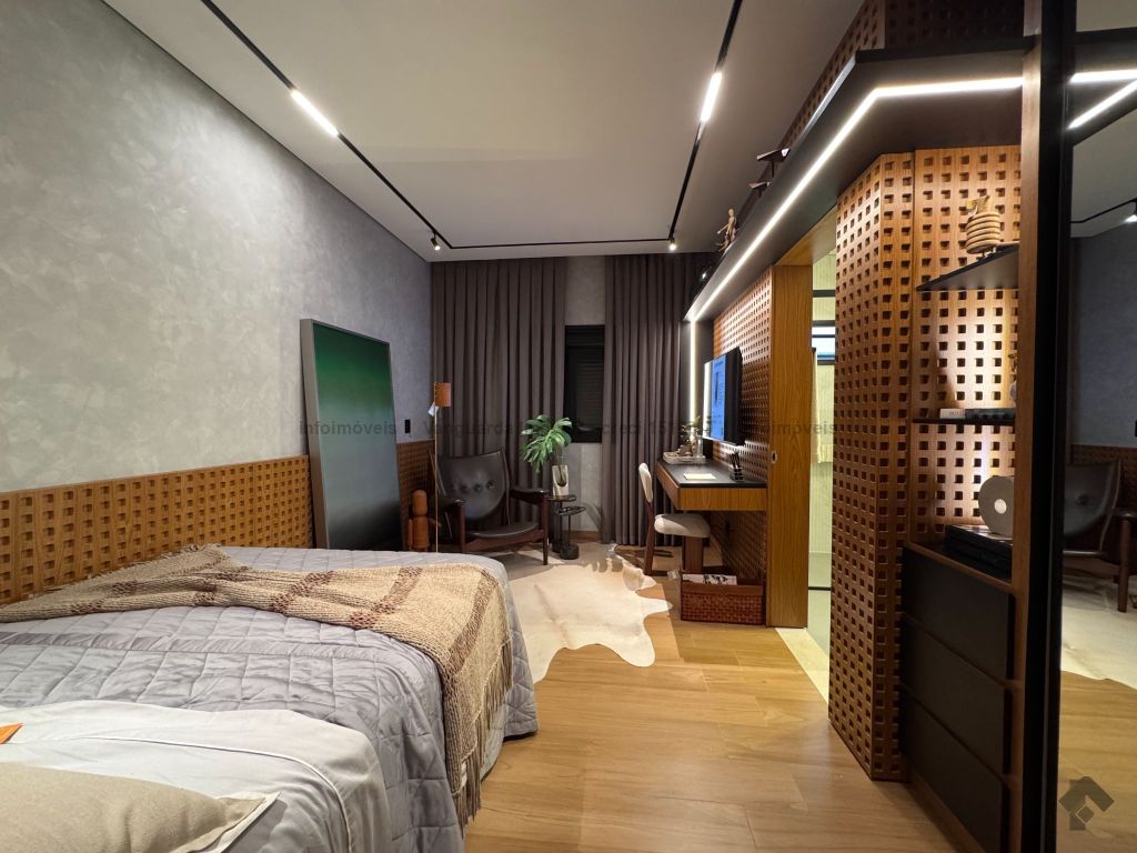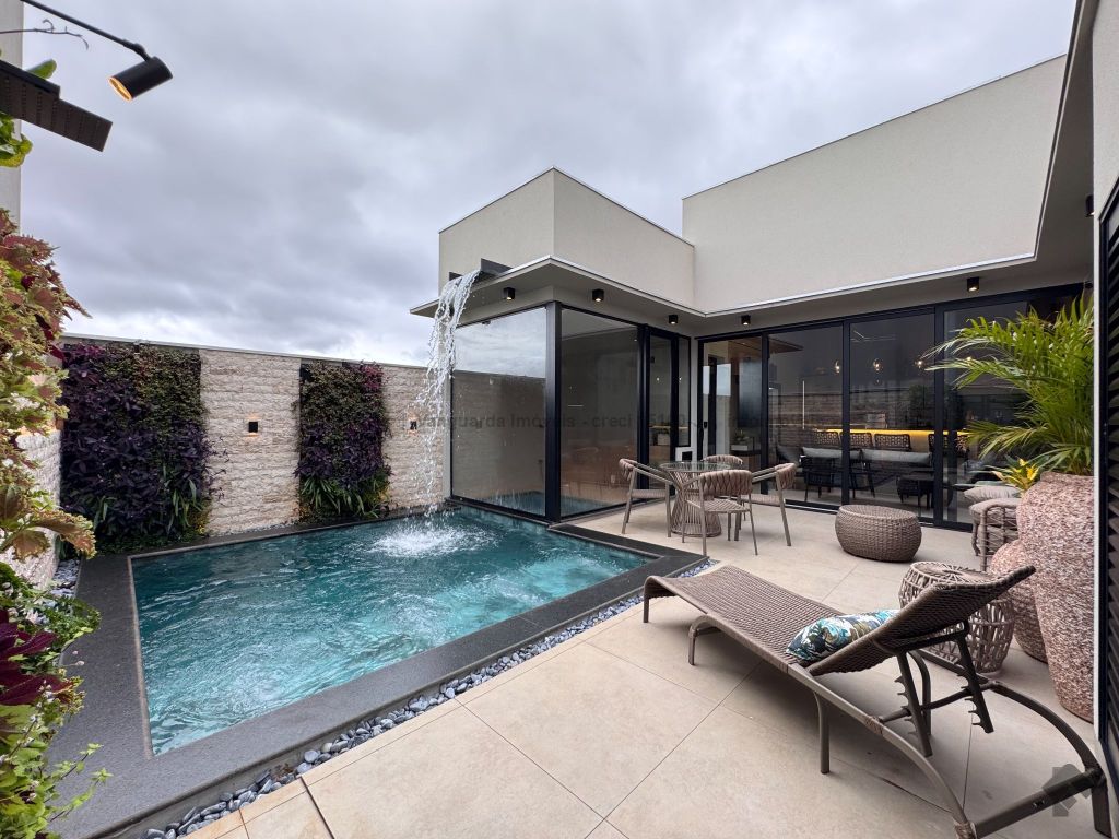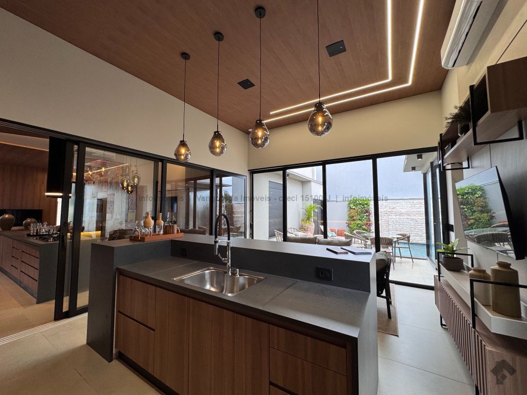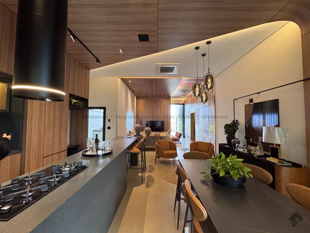 Casa de alto padrão no condomínio Riviera Dourados-MS. Uma verdadeira joia da arquitetura contemporânea. São 264m² de área construída em terreno de 415m², com 4 suítes, sala ampla, escritório, cozinha planejada, espaço gourmet com churrasqueira Kafer e chopeira Naja, sauna e piscina aquecida. O imóvel conta com automação completa, móveis planejados, sistema fotovoltaico, irrigação automática e pré-instalação para carregador veicular. Projeto assinado por 12 arquitetos e 3 paisagistas, unindo elegância, tecnologia e sustentabilidade.