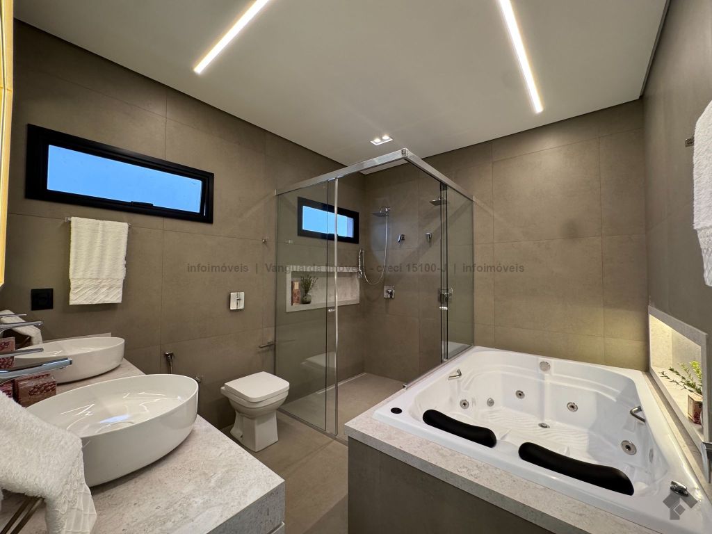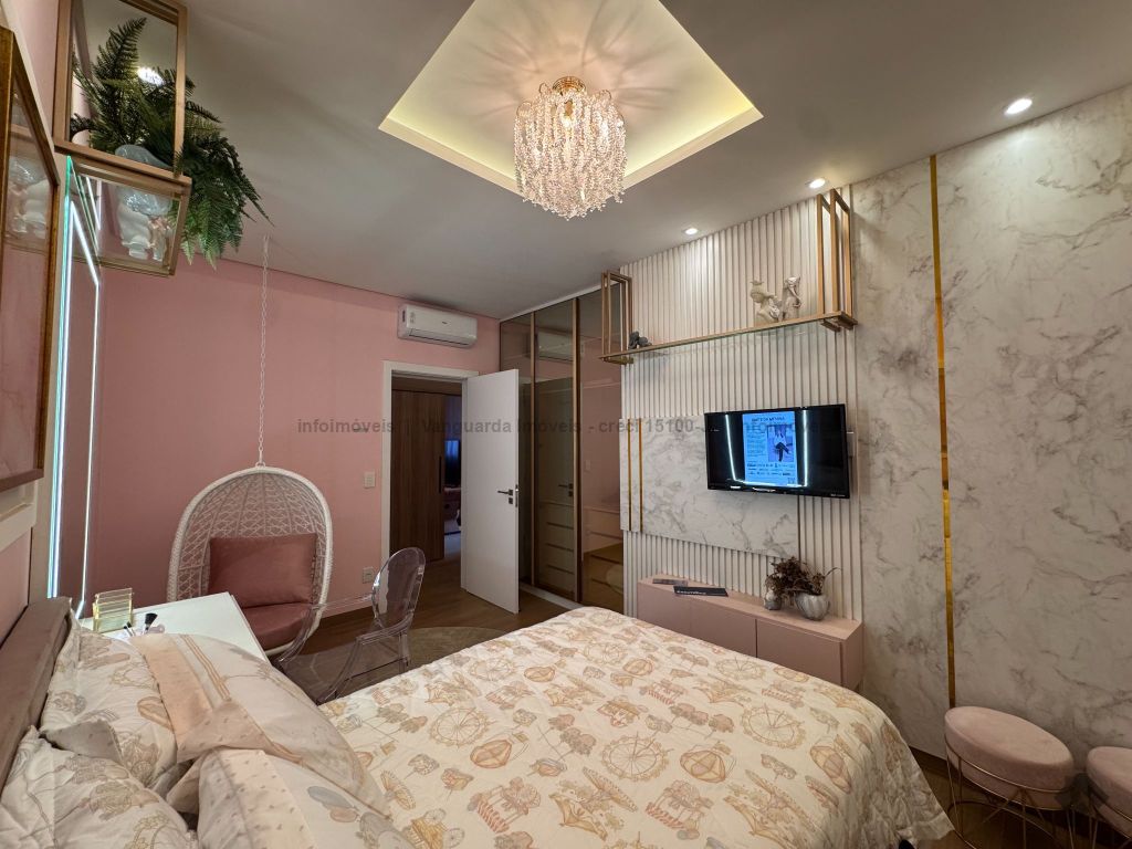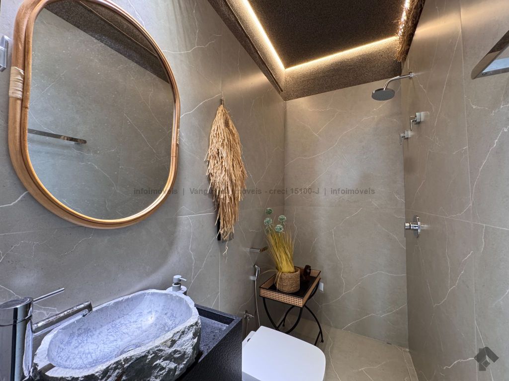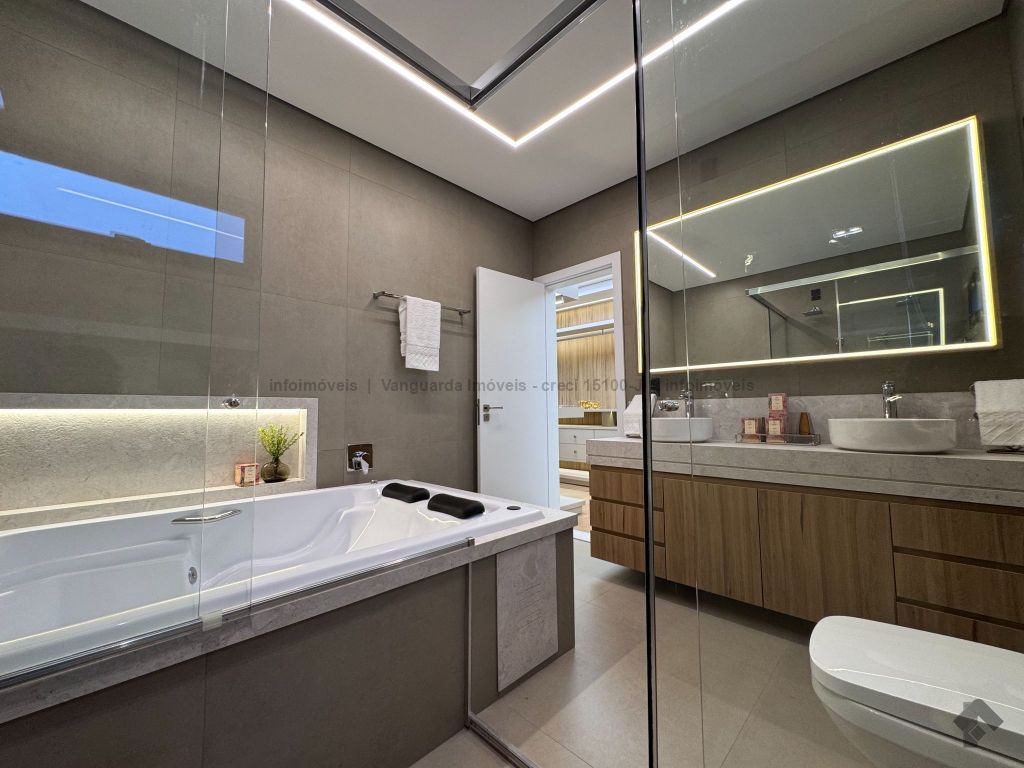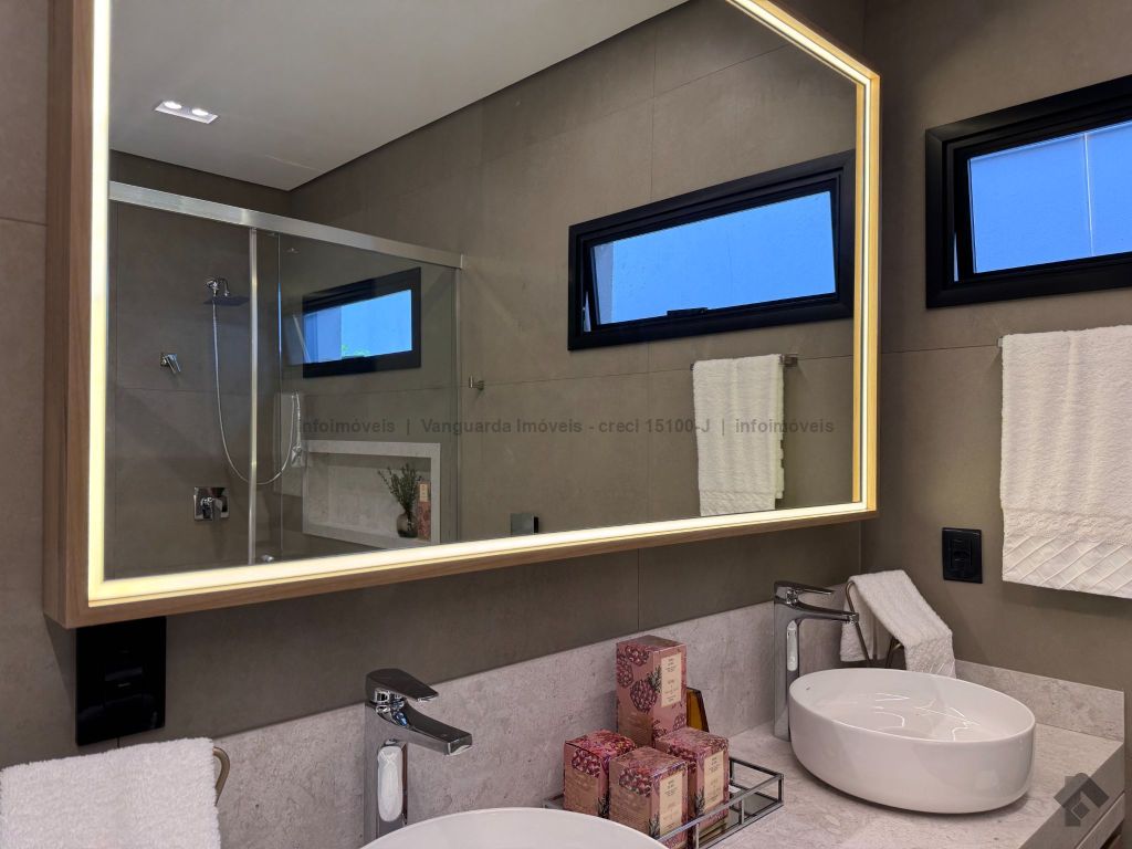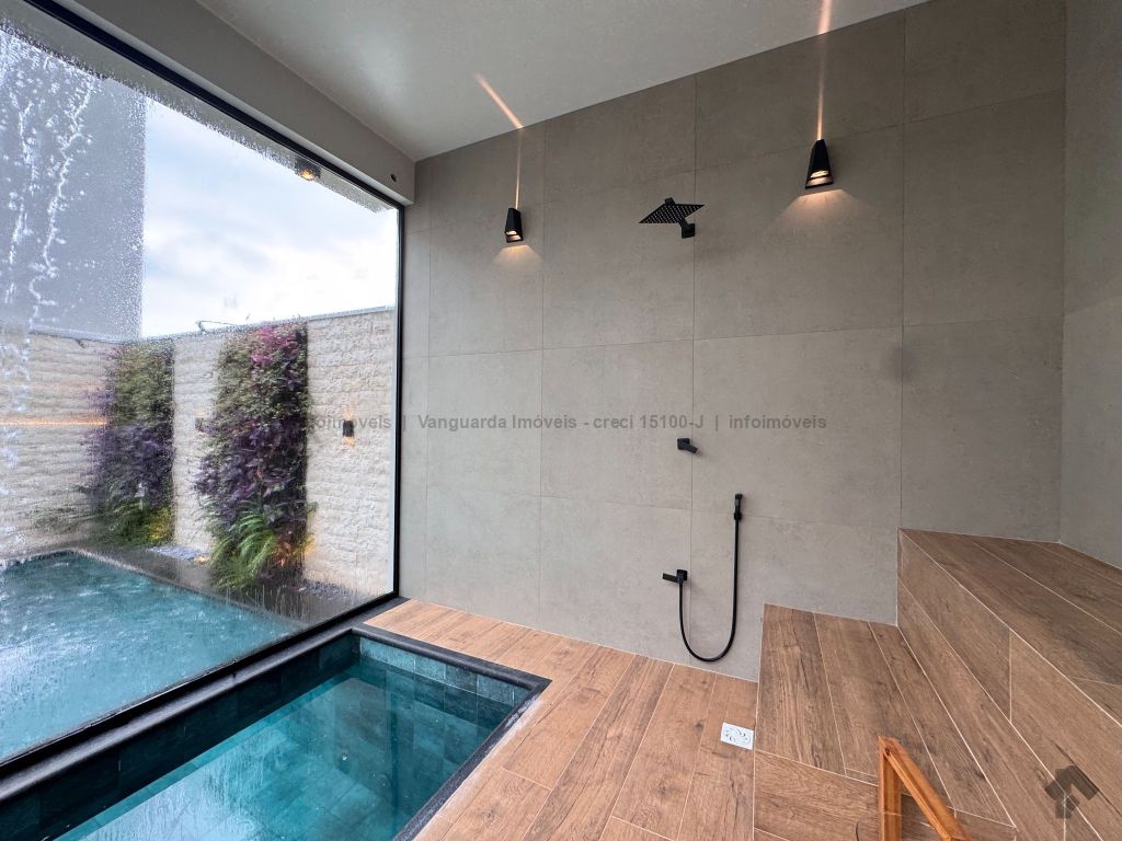 Casa de alto padrão no condomínio Riviera Dourados-MS. Uma verdadeira joia da arquitetura contemporânea. São 264m² de área construída em terreno de 415m², com 4 suítes, sala ampla, escritório, cozinha planejada, espaço gourmet com churrasqueira Kafer e chopeira Naja, sauna e piscina aquecida. O imóvel conta com automação completa, móveis planejados, sistema fotovoltaico, irrigação automática e pré-instalação para carregador veicular. Projeto assinado por 12 arquitetos e 3 paisagistas, unindo elegância, tecnologia e sustentabilidade.