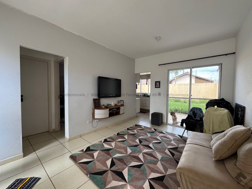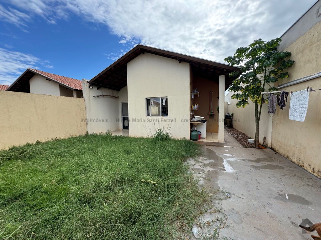 Casa com 2 quartos, 1 banheiro, armário planejado na cozinha e no quarto, área de serviço, imóvel alugado, varanda coberta e quintal com espaço.