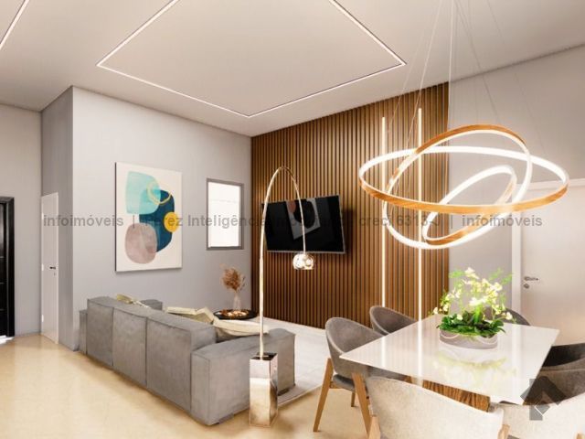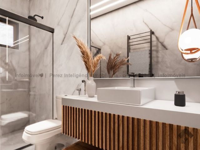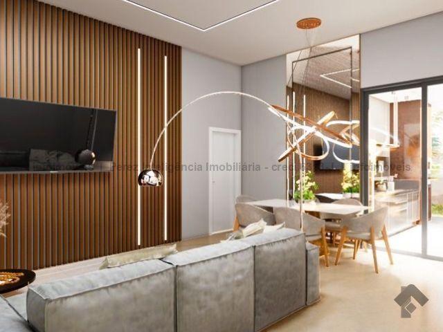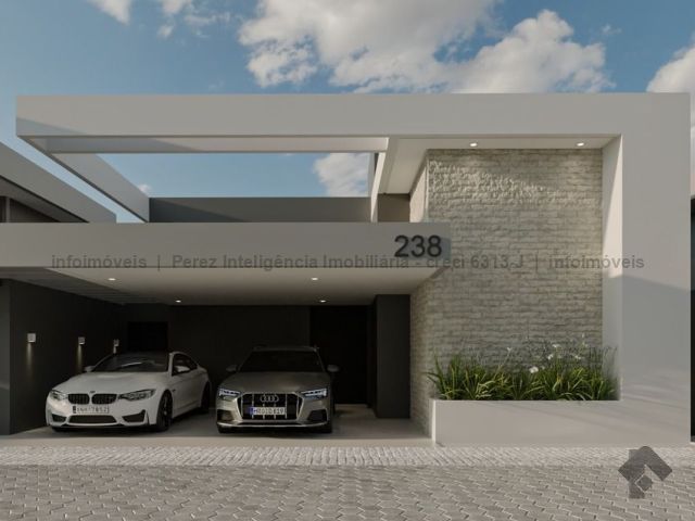 Casa térrea com área útil 148,21m². Tendo: 03 suítes, 01 sala de estar, 01 sala de tv, 01 sala de jantar, 01 cozinha, 01 lavabo, 01 área de serviço, 01 área gourmet, 02 vagas de garagem cobertas.