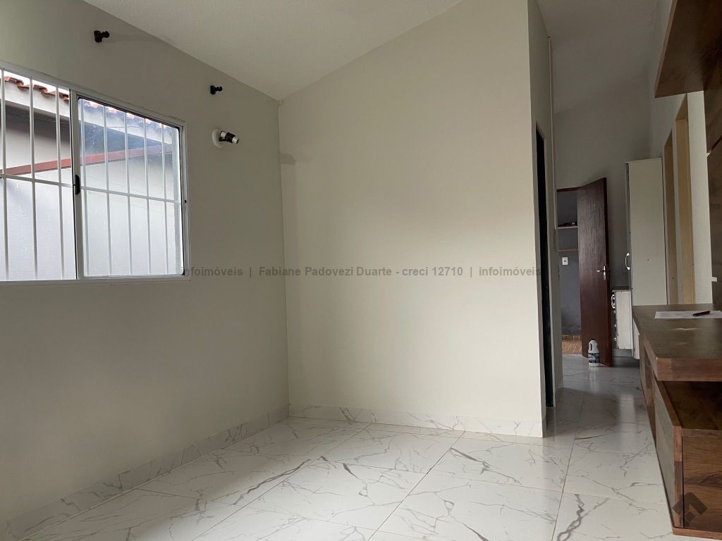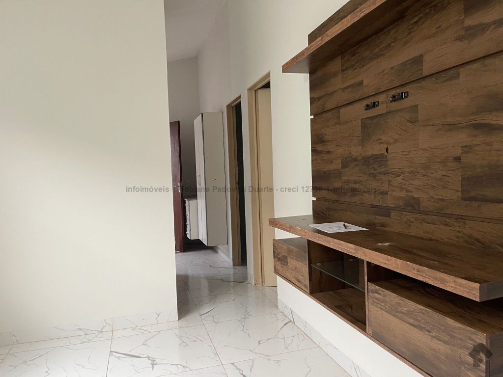 Condomínio com apenas 25 casas, ótima vizinhança, sem barulho, monitoramento e cerca elétrica, ideal para casal que procura um lugar sossegado para morar. Dispõe de dois quartos, sendo uma suíte, ambos com ventilador de teto, banheiro social com box, sala com ventilador de teto e painel de TV, cozinha com armários, lavanderia coberta com despensa, corredor lateral e garagem coberta para dois carros.